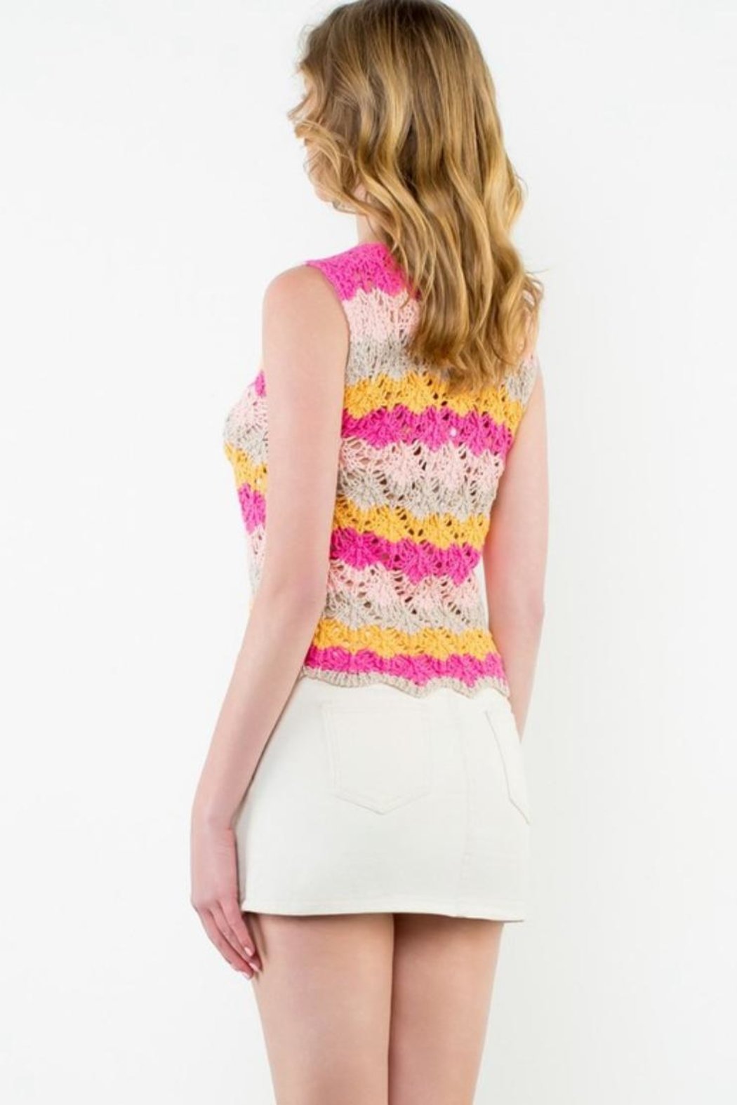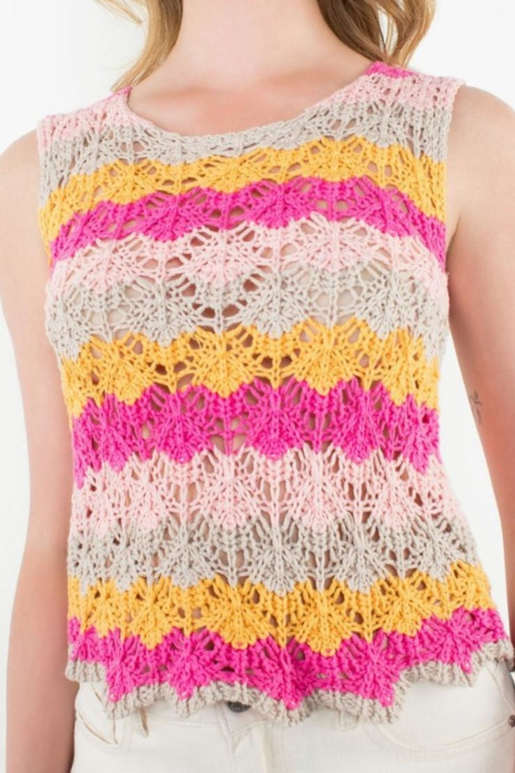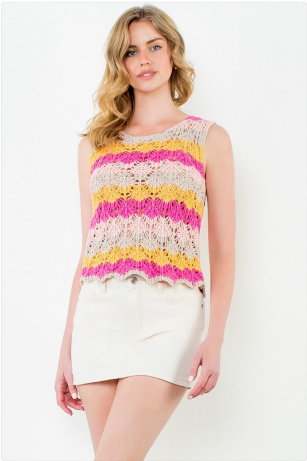 This sleeveless colorful crochet tank top is perfect for spring and summer. Stay cool and stylish in this fun tank. Model is wearing a size small.