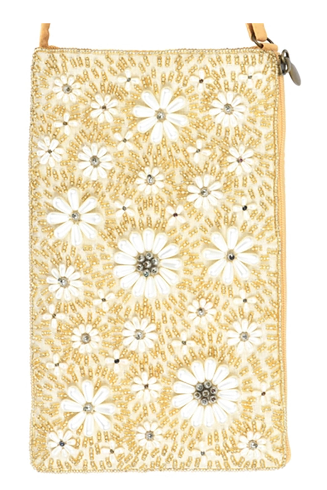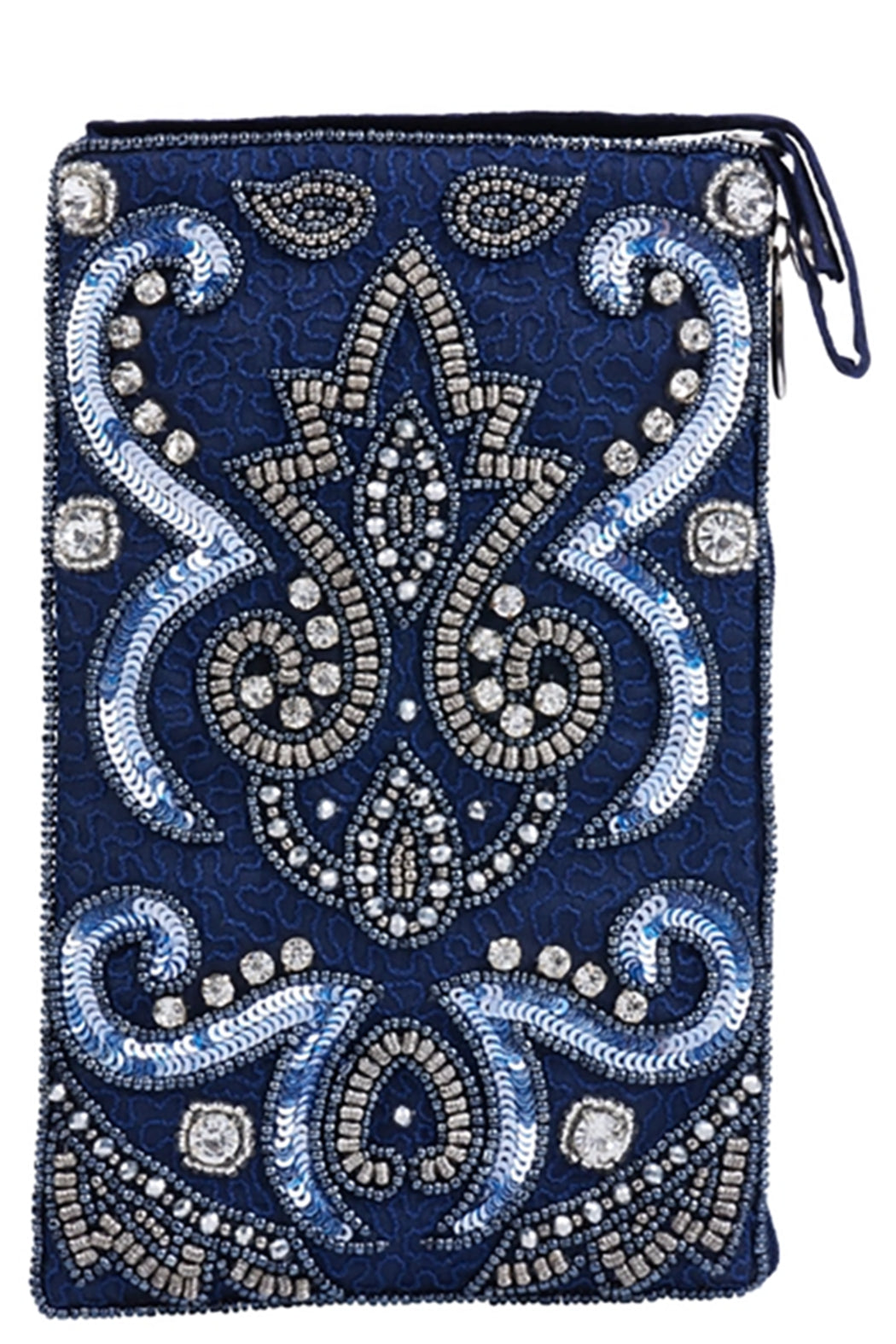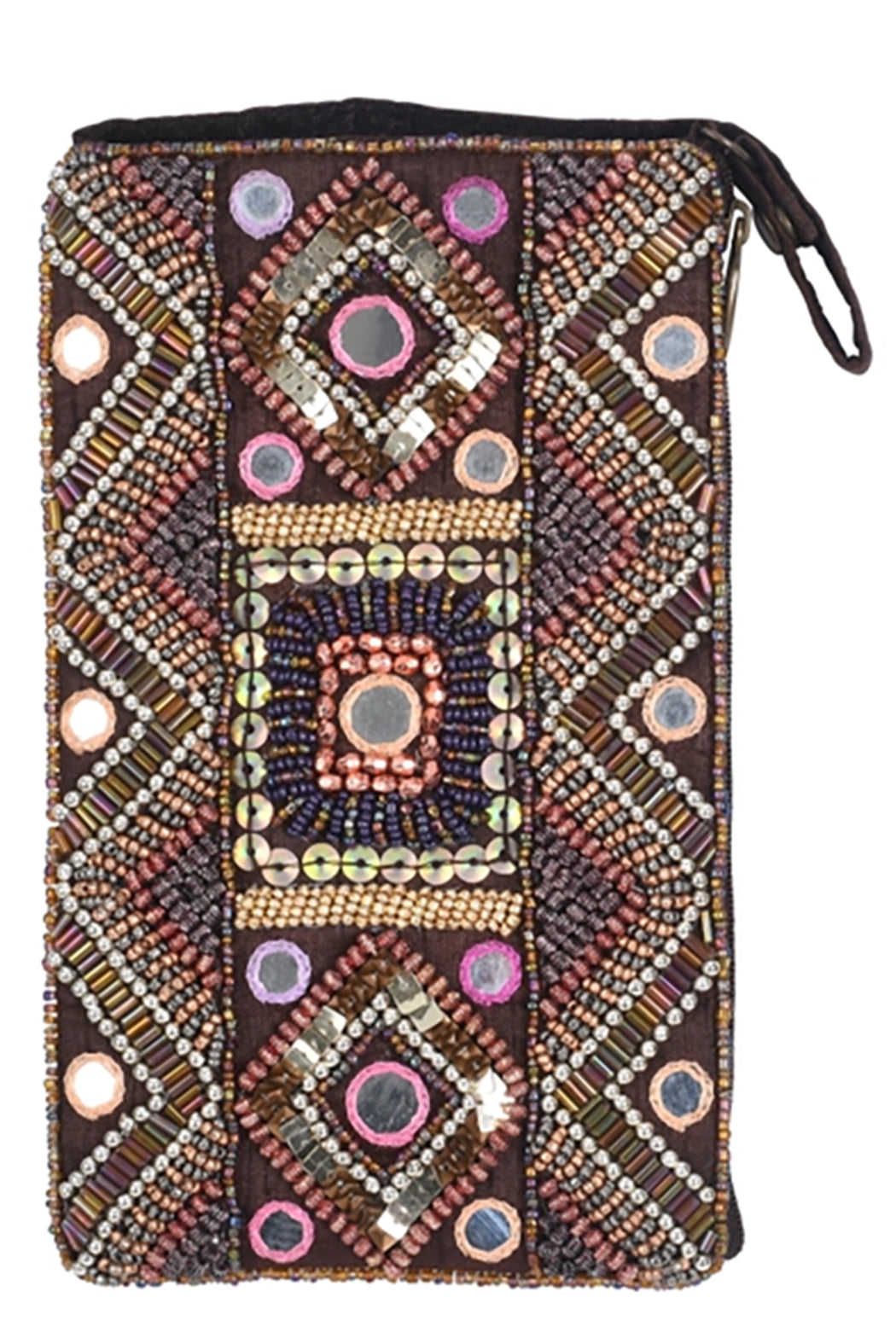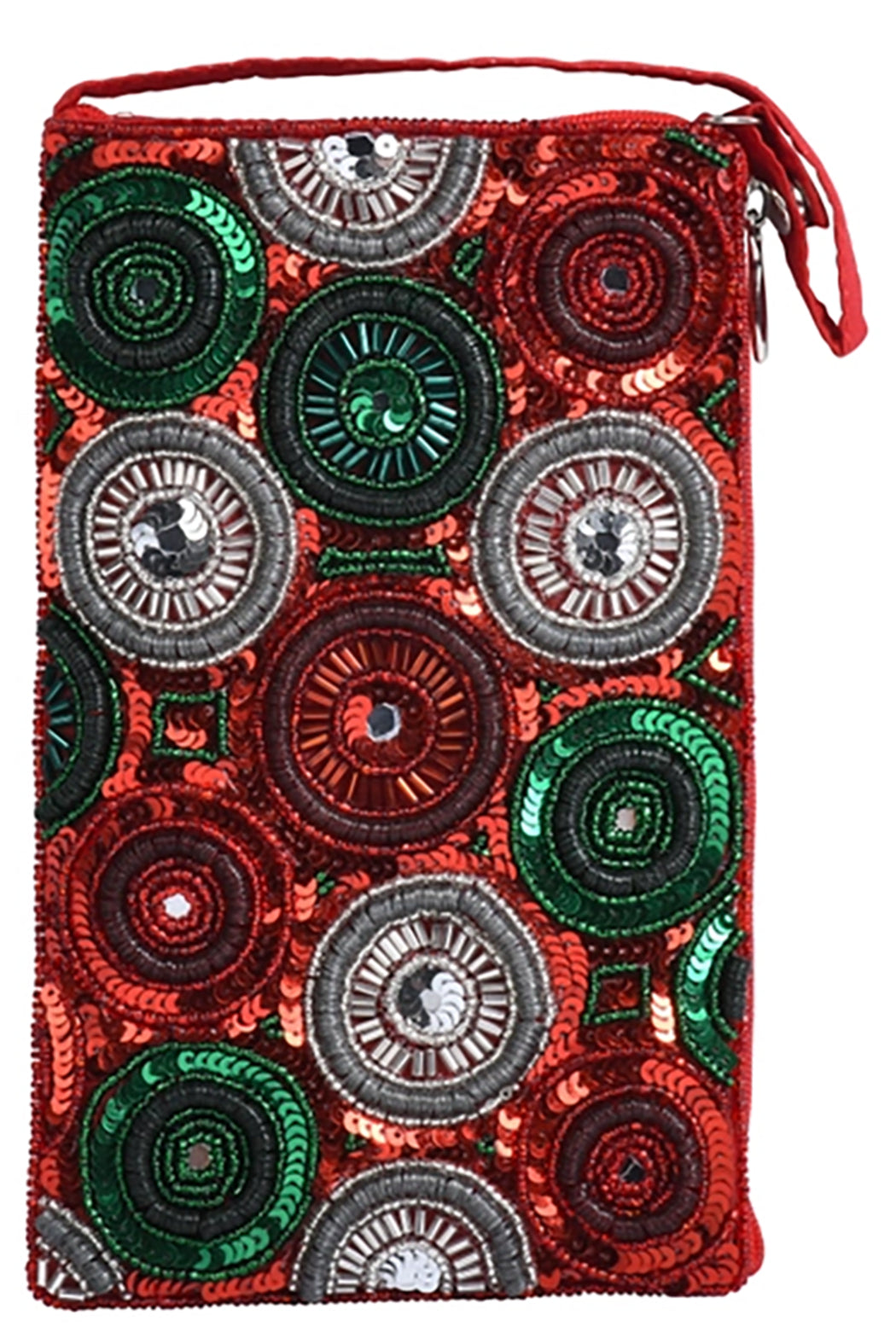 The Club Bag holds your essentials in style! Hand beaded by artisans in India, this versatile smart phone bag can be worn cross body or as a wristlet. Includes 54" cross body strap that can tuck inside when not in use, a short strap that unsnaps so the bag can be attached to a larger bag or belt, and a separate, secure side zip pocket for cash and credit cards.