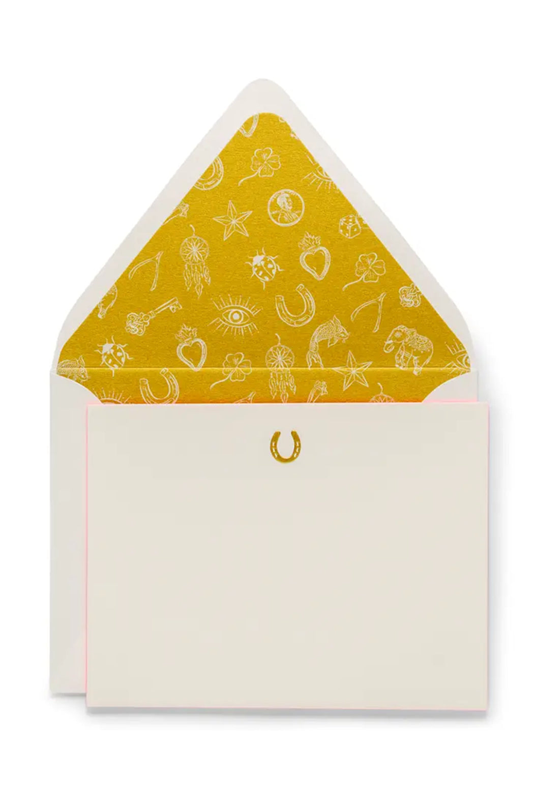 Set of 6 letterpress flat cards on 2 ply cotton paper with lined envelopes and painted edges.
