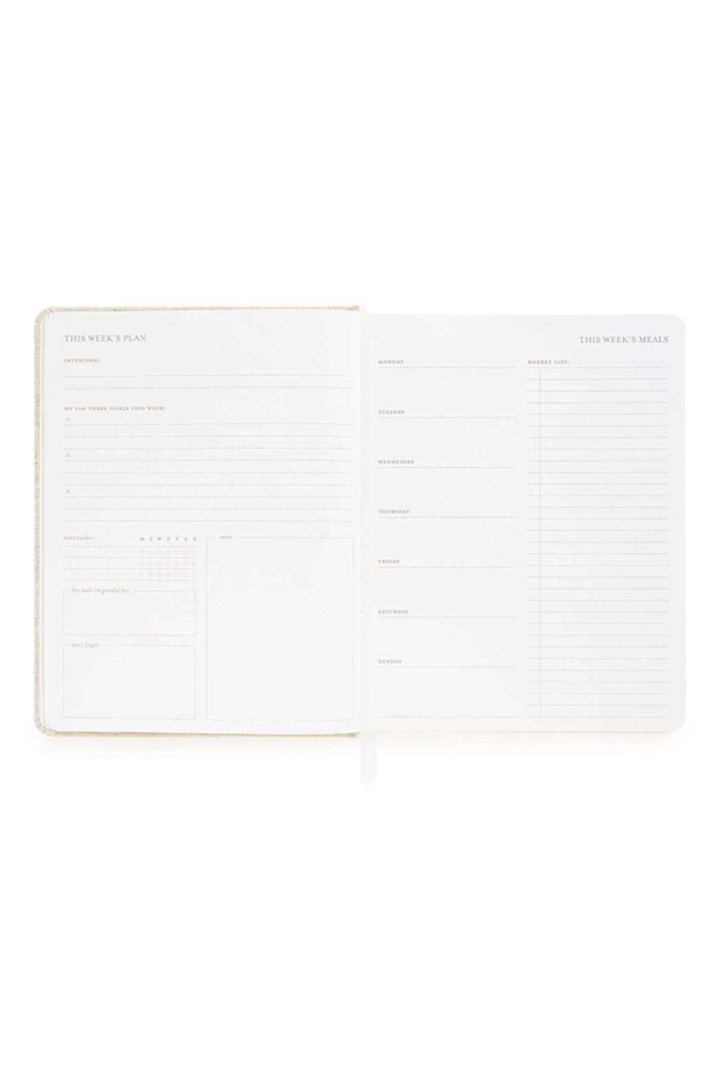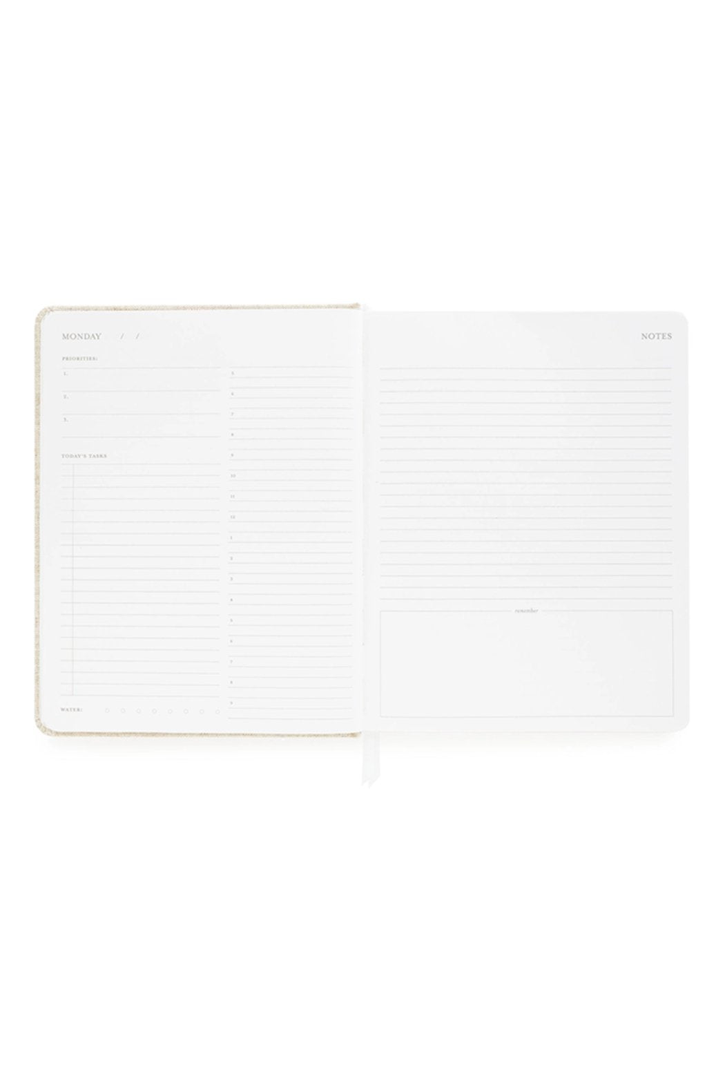 Plan with purpose and style. The Undated Daily Planner allows you to start today with a flexible approach to planning. Map out your months, break your goals down by the weeks and days, build new habits, plan your meals, wrangle all your tasks, and schedule your days by the hour. Details: 7 x 9 inches 233 Pages including Extra Notes Pages Fabric Bound Crisp White Text Paper Double-Ribbon Detail Foil Stamped Details 12 Weeks, Undated
