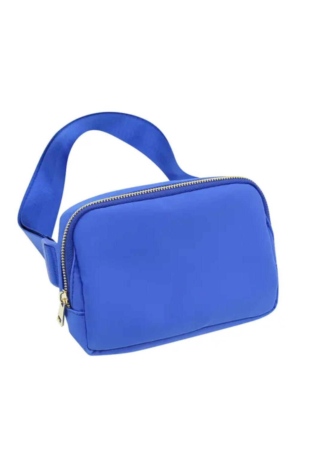 These bags are perfect for everyday. They are made of a durable nylon material, accented with gold zippers and have an interior pocket. The waist belt is soft and adjustable.