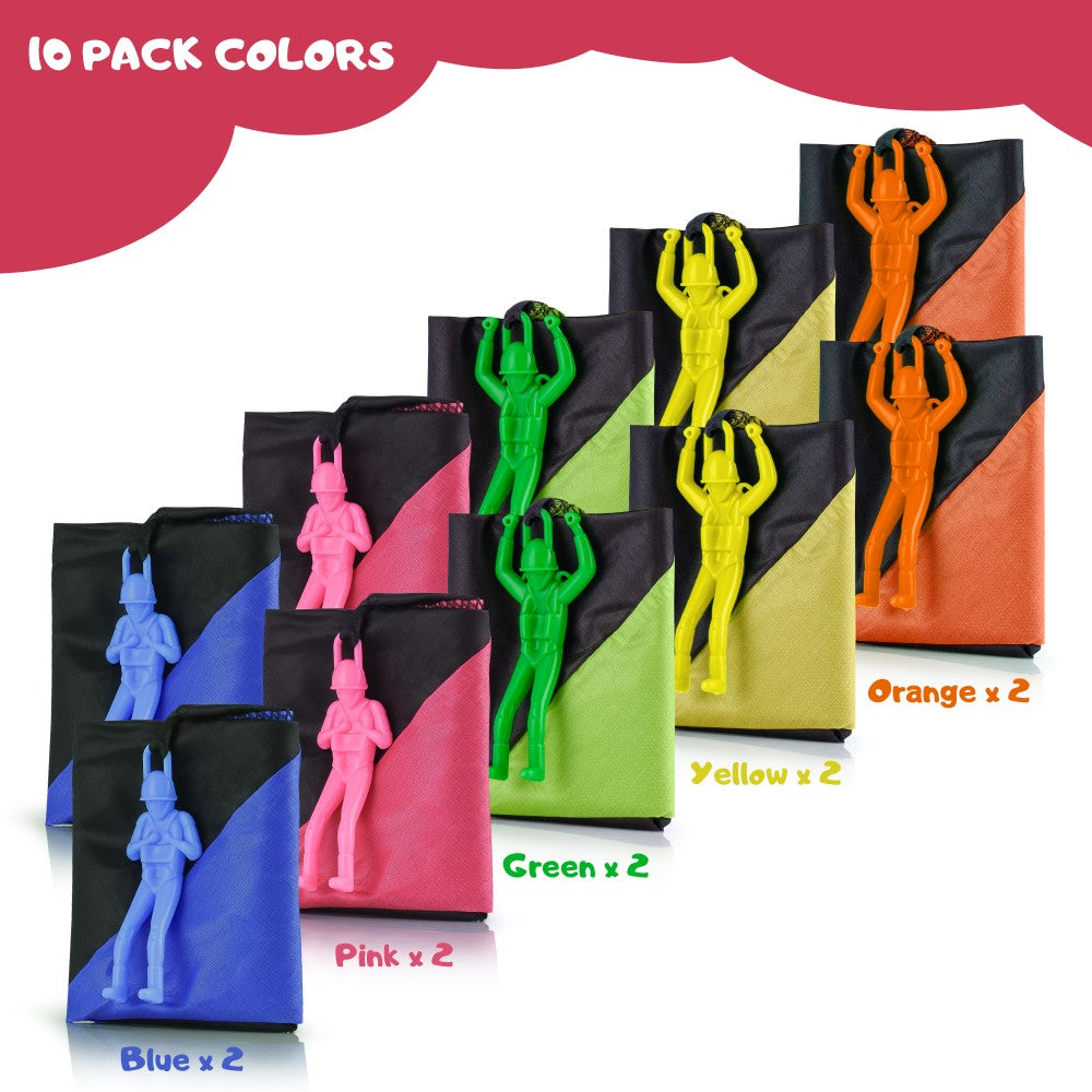 The tangle-free parachute has no strings to tangle, no batteries to replace, and no assembly required, just simply toss high and watch them fly.