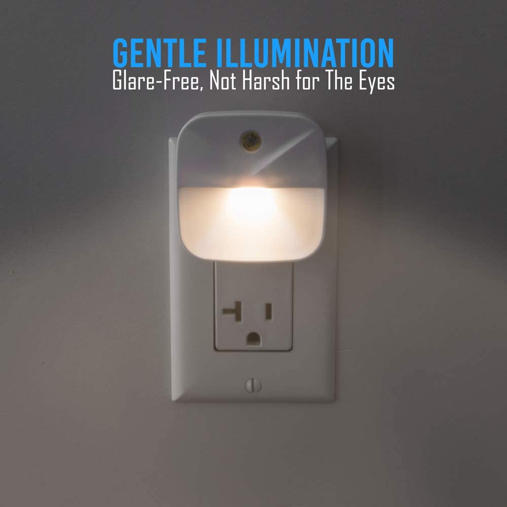 - THE PERFECT BRIGHTNESS - Warm white LED night lights provide perfect illumination to your room, it’s not too bright and not too dim, not dazzling in the dark, never worrying there is strong light in the dark which is not friendly to the eyes.