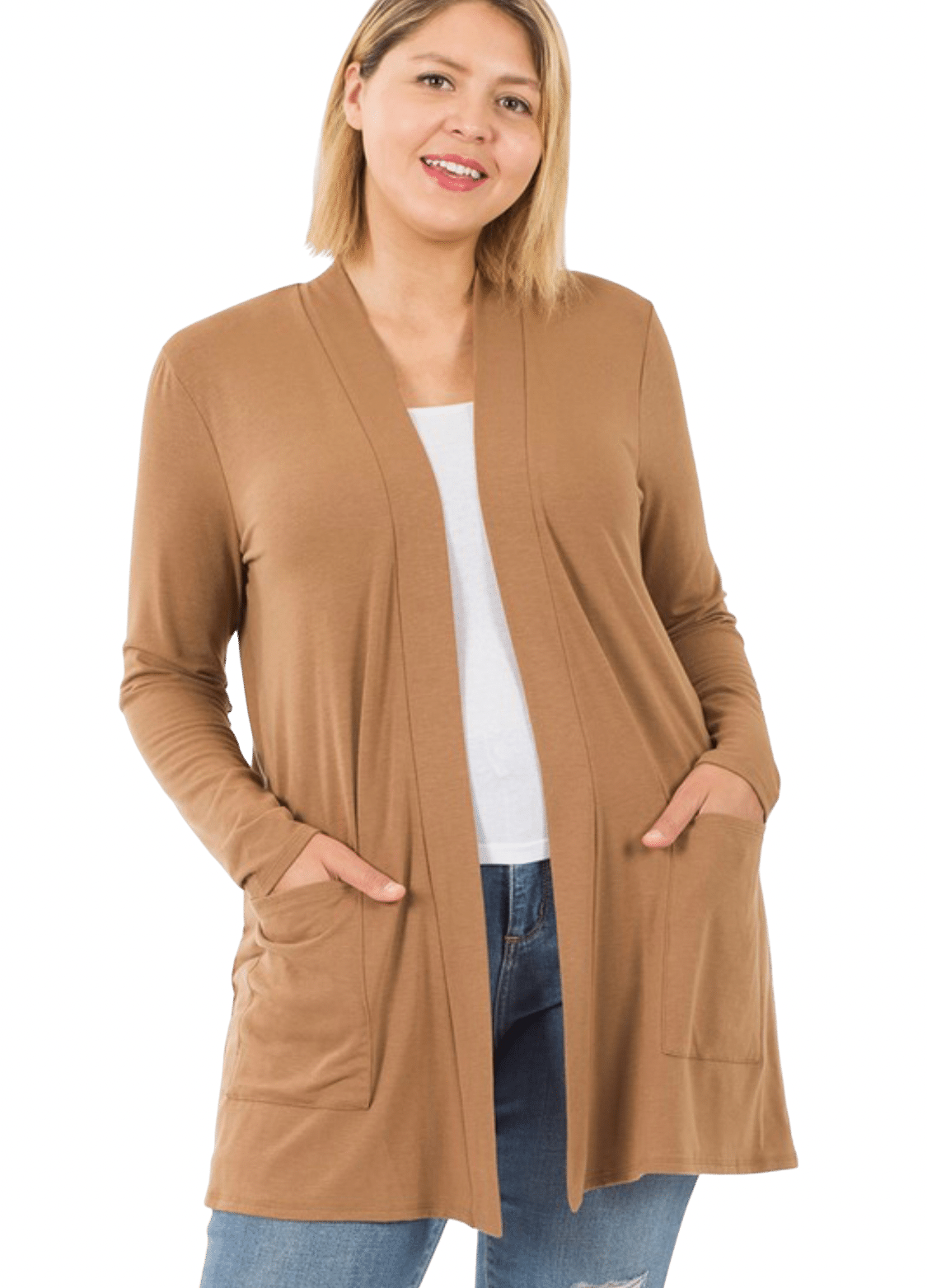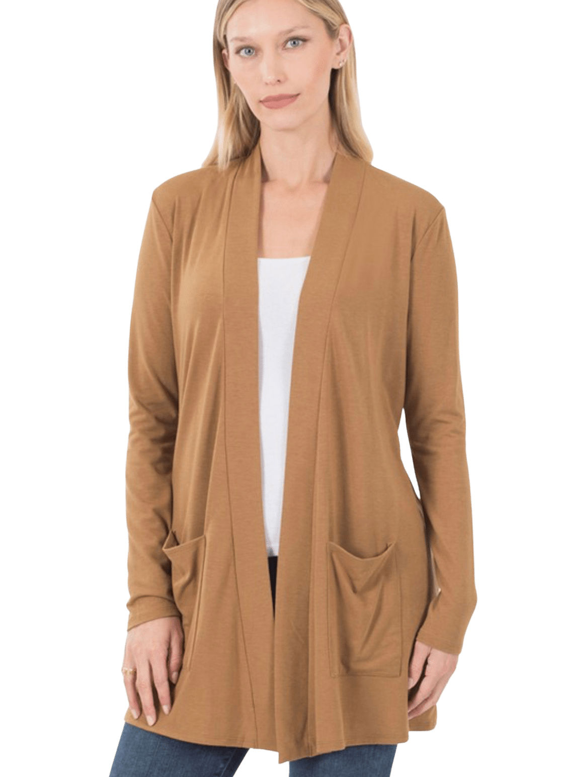 Camel Brown SLOUCHY POCKET OPEN CARDIGAN