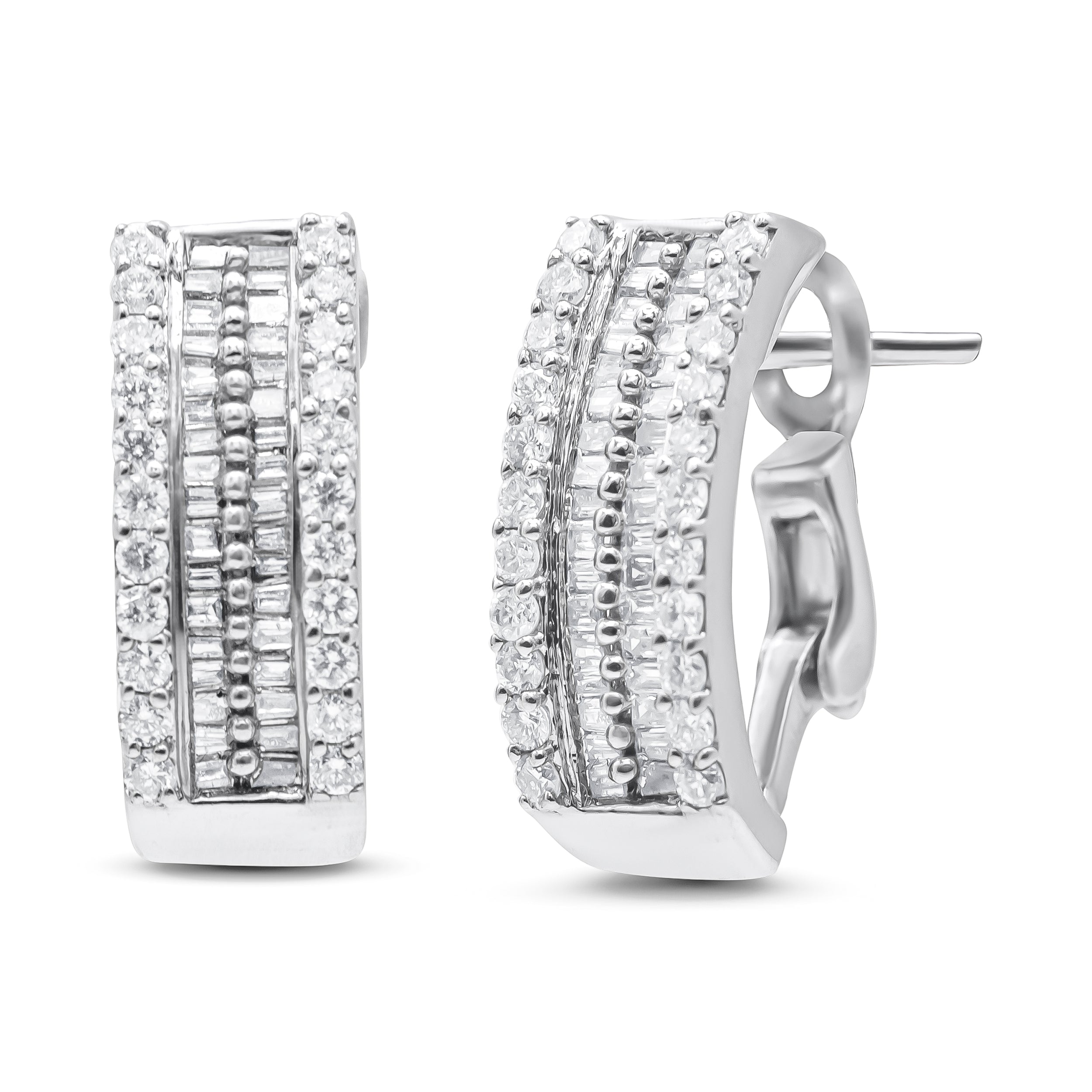 14K White Gold 1 1/2 Cttw Round And Baguette Cut Diamond Earrings (H-I, Si2-I1)
