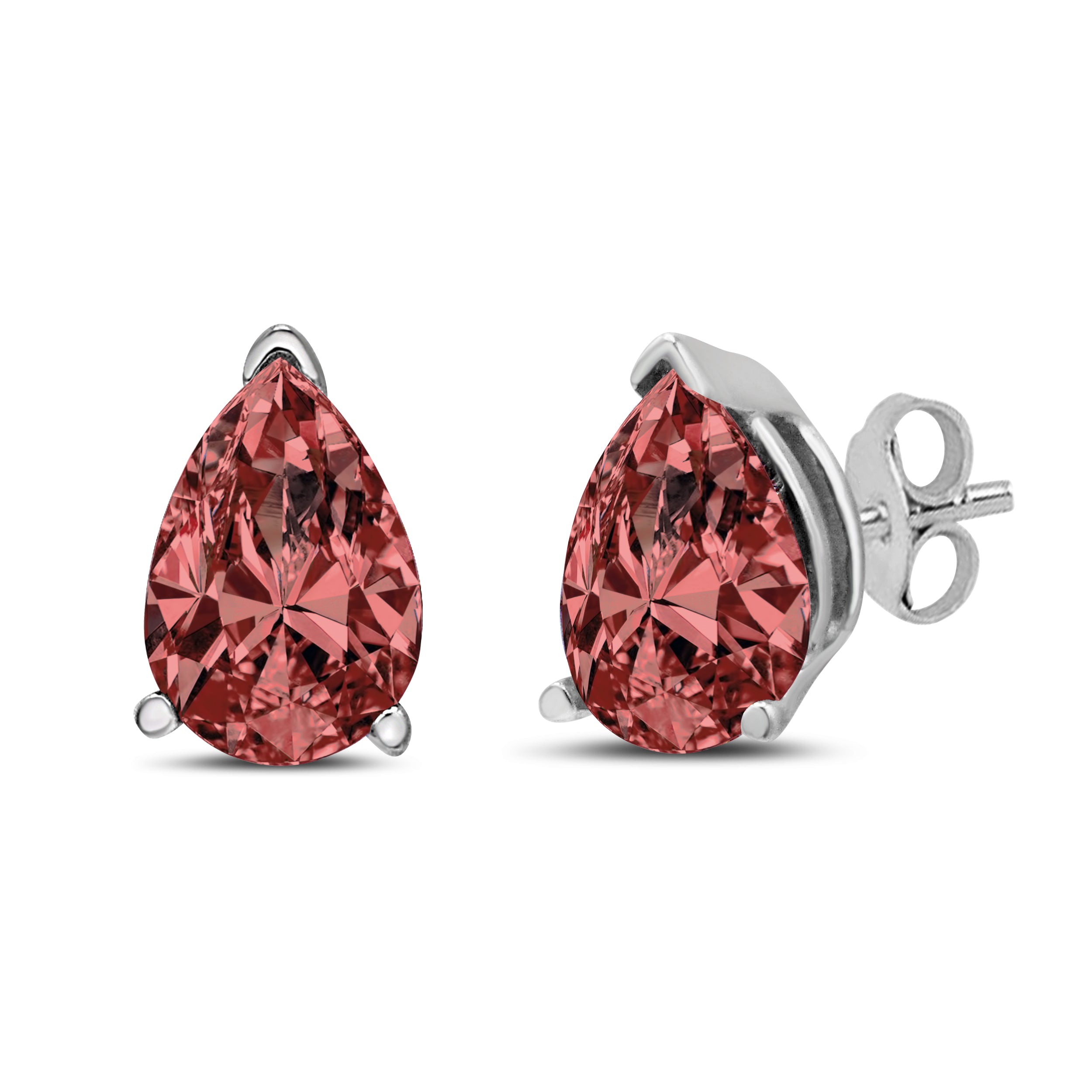 14K White Gold 1/2 Cttw Lab Grown Pink Pear Diamond 3 Prong Set Martini Solitaire Stud Earrings (Pink Color, Vs2-Si1 Clarity)