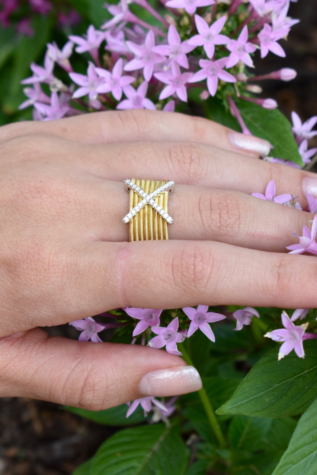 14kt Yellow Gold Diamond (.14ctts) X Mesh Ring.