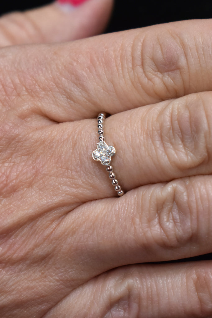 14kt White Gold Diamond (.08cttw) Clover Ring.
