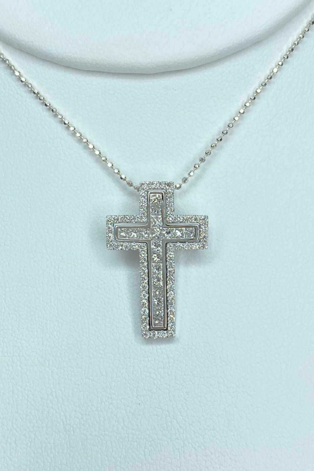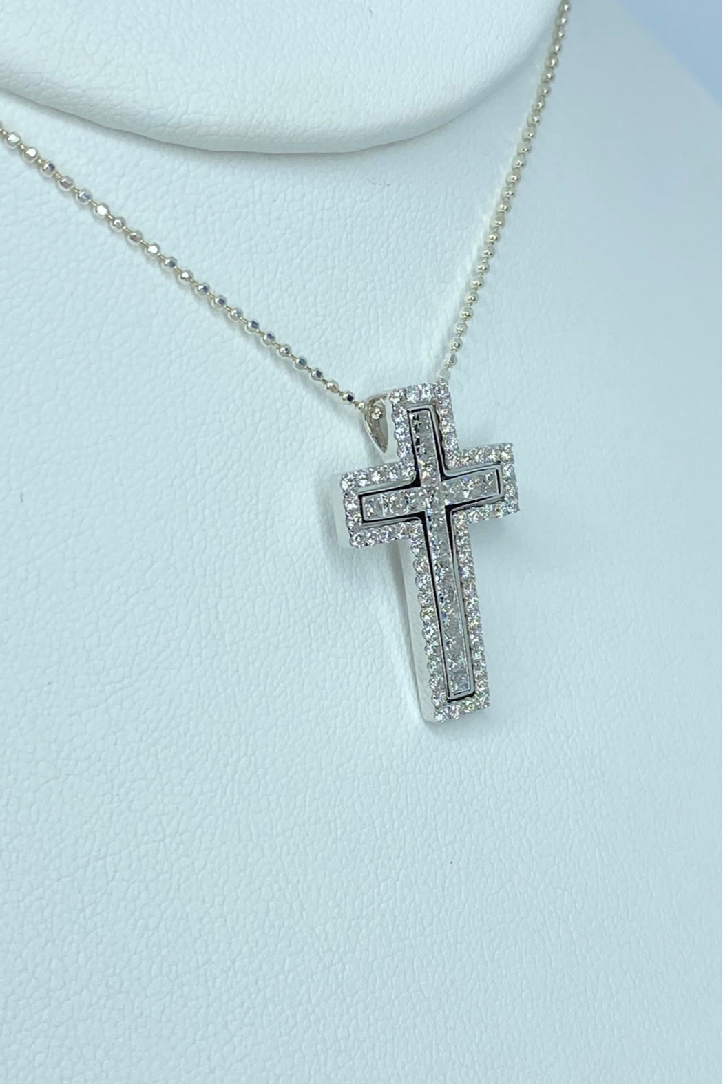 18kt White Gold Princess Cut & Round Diamond (1.30cttw) Cross Pendant. This gorgeous pendant can be broken apart & worn 3 different ways. See photos for details.