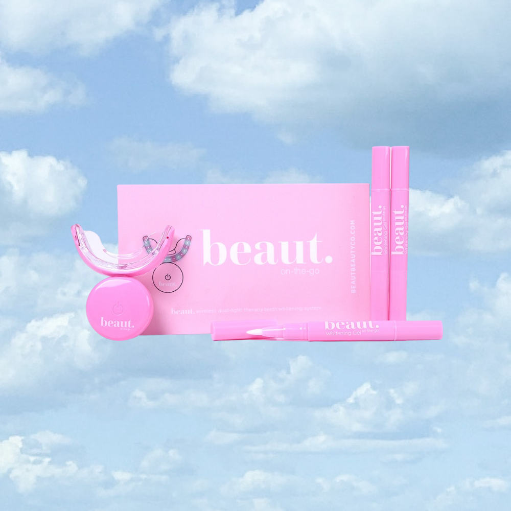 Our Pink or Blue Smile Kit features beaut. dual-light therapy (blue & red), which brightens your smile while giving the mouth a therapy session.