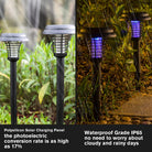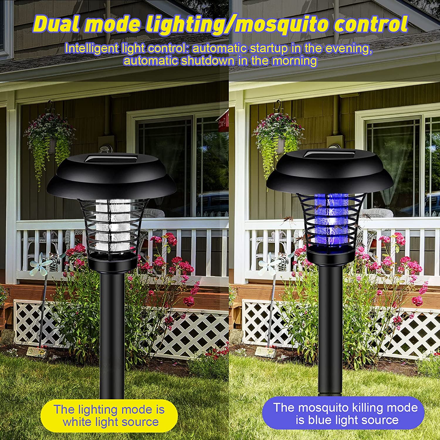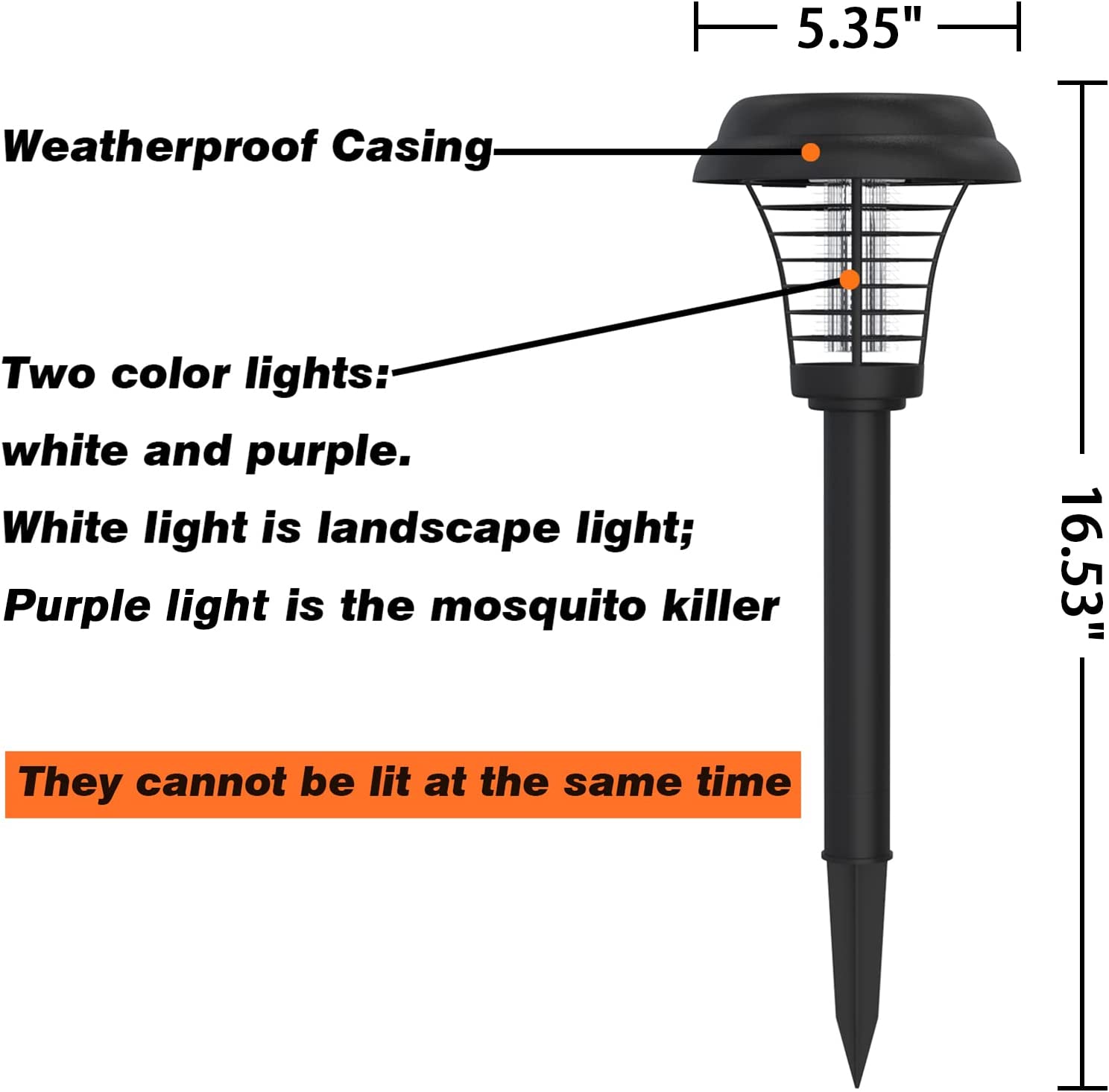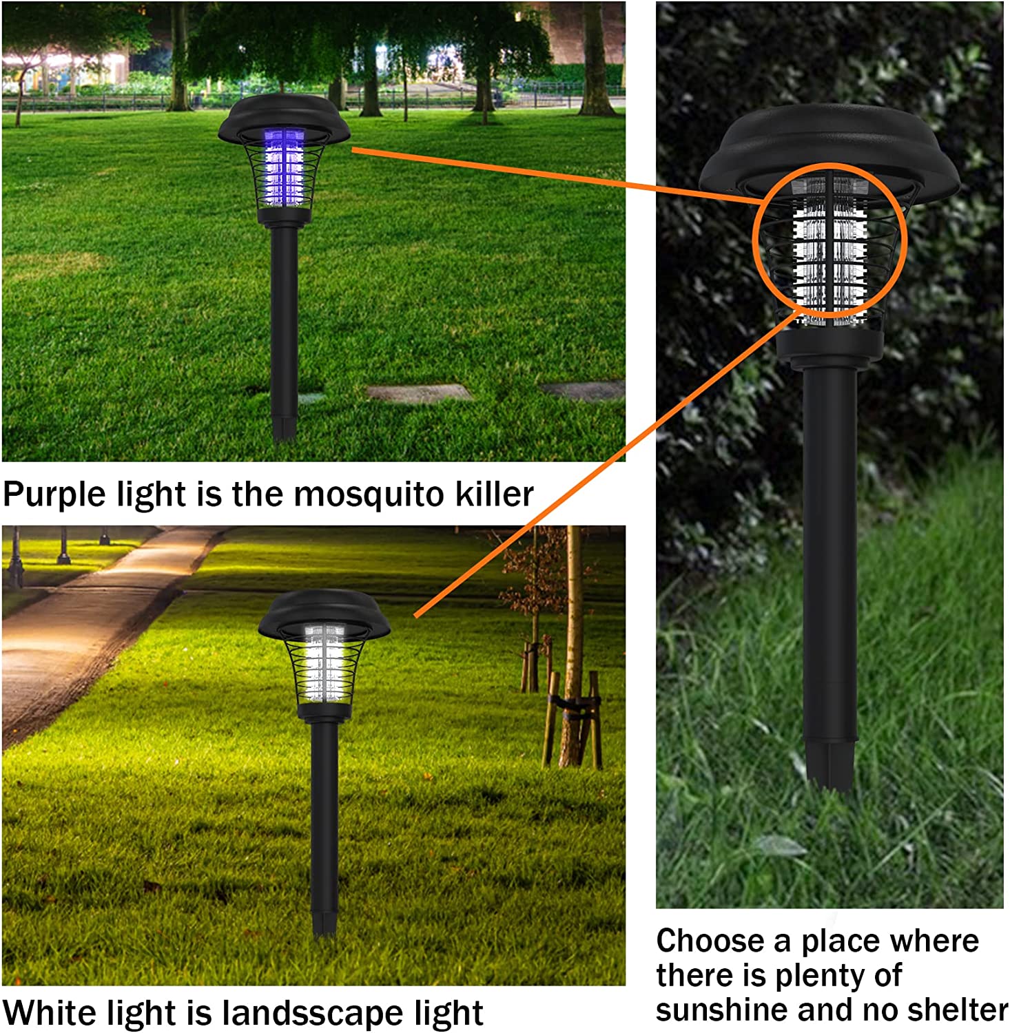 Our solar bug zapper outdoor waterproof LED light serves two functions with its white and purple light. The purple light effectively kills flying insects, while the white light adds a decorative touch to your outdoor space at night.