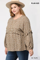 2054 Dawnie Ditsy Floral Printed Ruffle Detail Top - Reg & Plus
