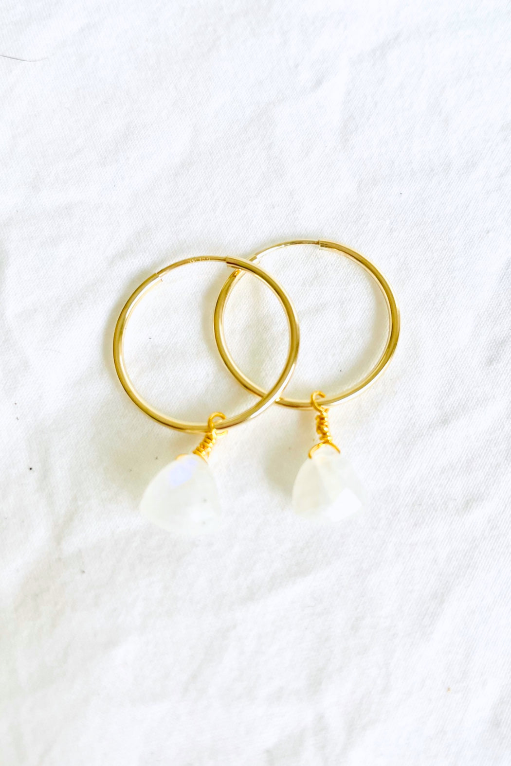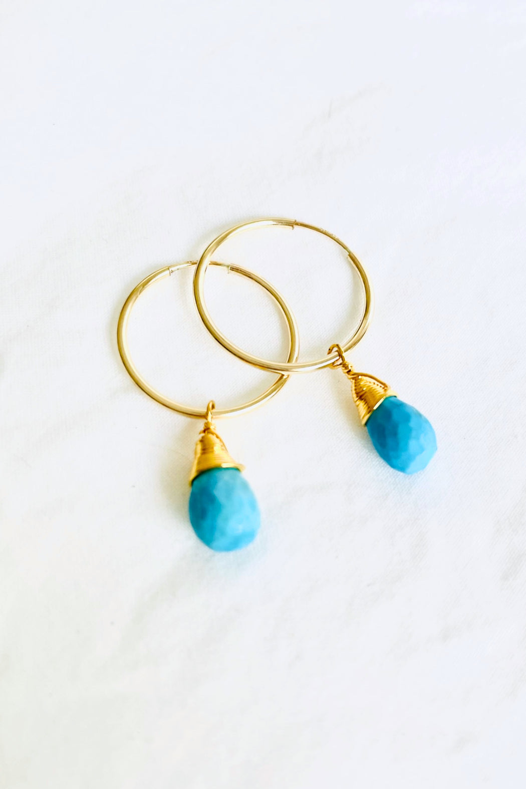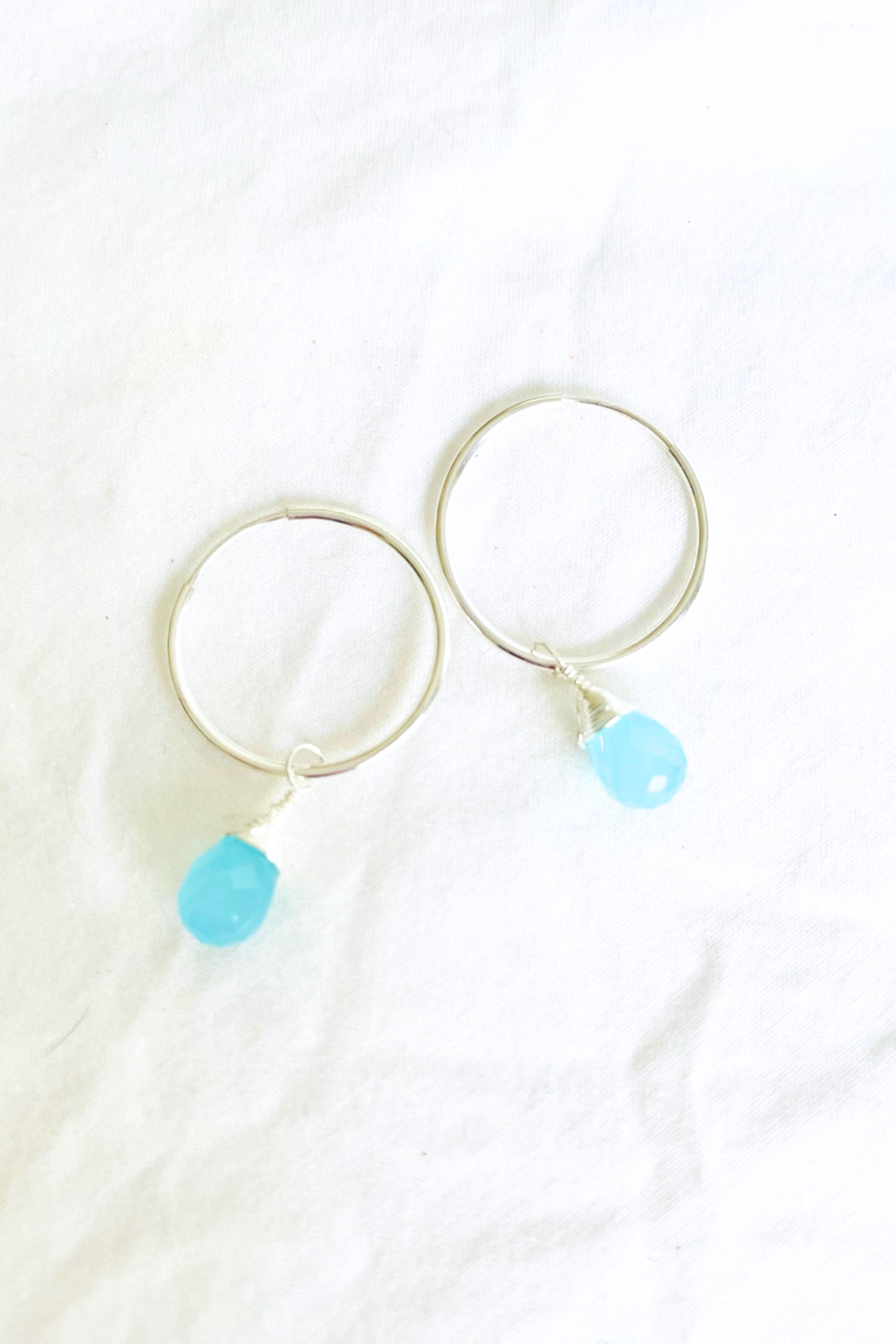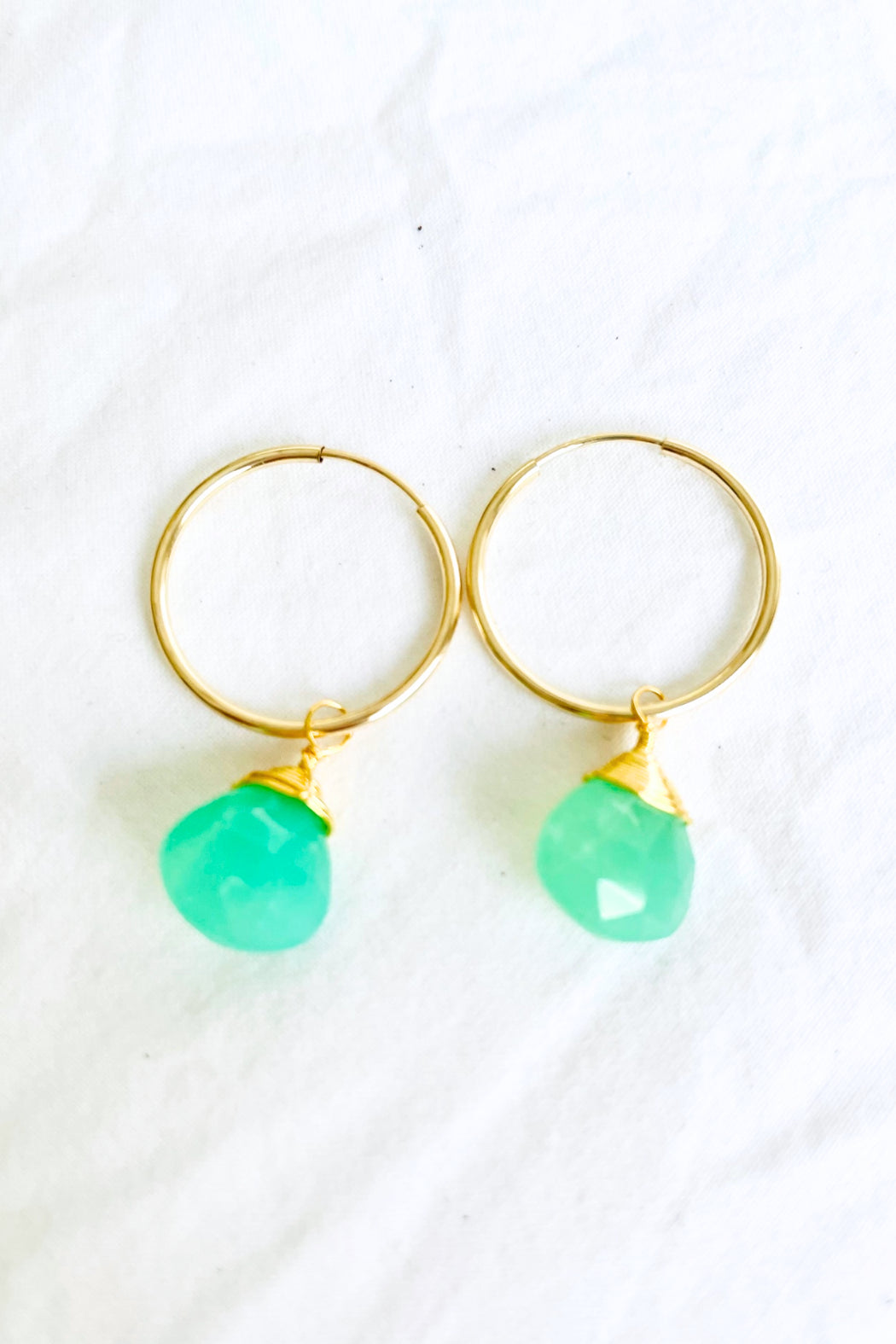 Gemstone: Choose Chrysoprase, Turquoise, Aqua Chalcedony or Moonstone, with 14K gold-filled or Sterling Silver 3/4" hoops