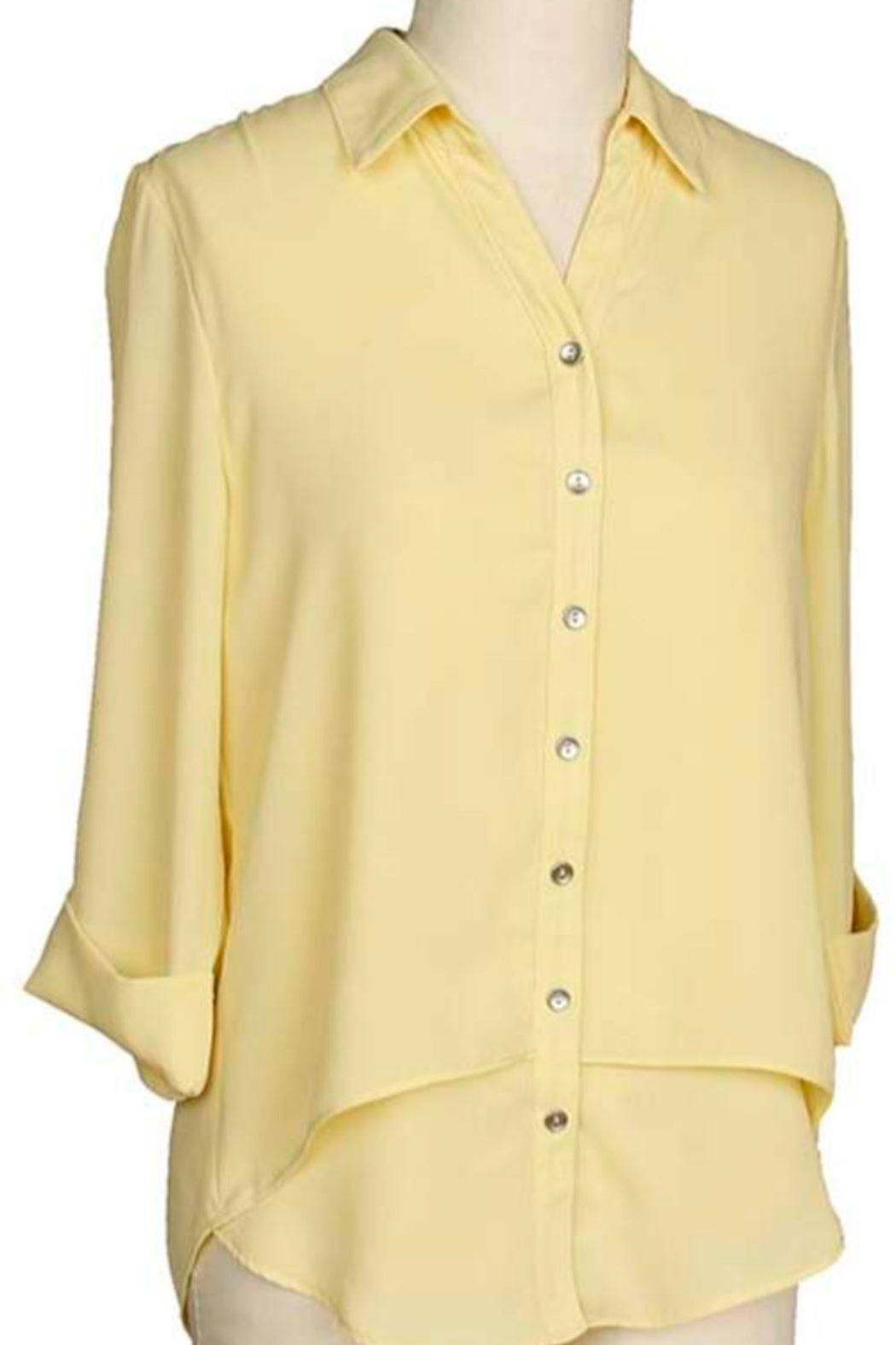 3/4 sleeve layered front button up blouse