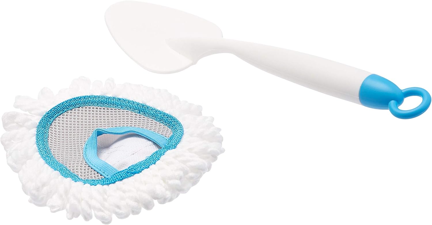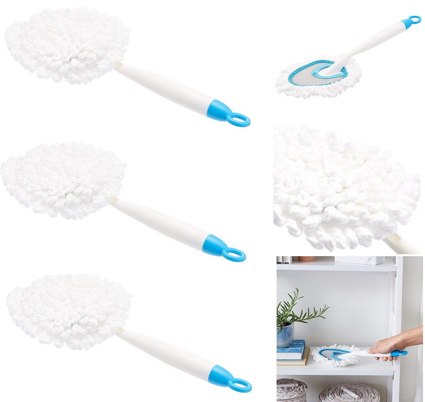 Mop-like microfiber head naturally attracts dust particles, effectively trapping them