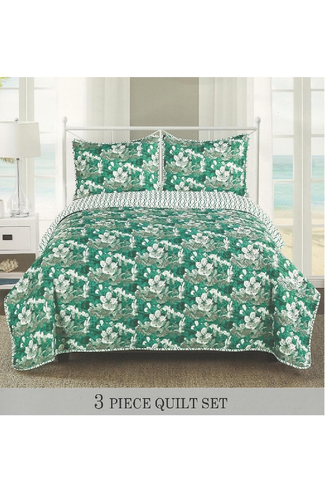3 Piece Quilted Bedspread Set - Green Floral - Full/queen & King Size