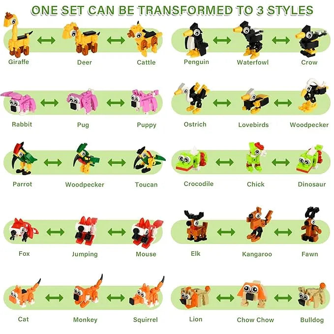 - Mini Animals Building Bulk- Each animal set can be transformed into 3 different animals. Easy for kids to set up with separate instruction to show the steps on how to assemble. Individual instructions packaged in each corresponding building block bag, perfectly suited for party favors.