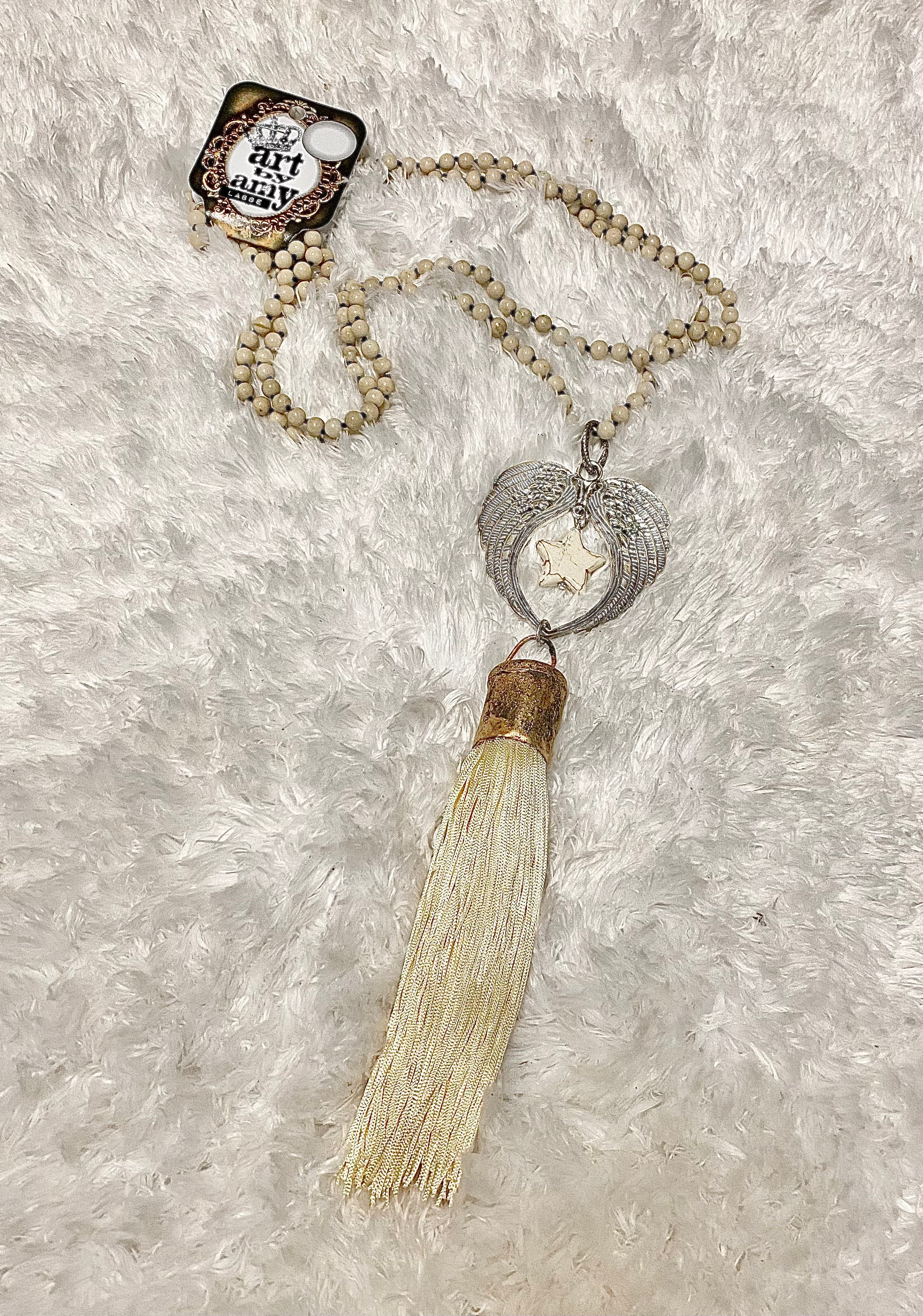 Vintage is IN, and you will be too, with this vintage stained glass necklace with chandelier-like chains dripping off it! ! Fun, unique piece from artist Amy Labbe!