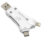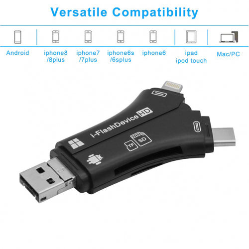 Access the data on your memory cards with this 4-in-1 Media Transfer with Memory Card. It's suitable for all devices with 4 interfaces. This durable tool is ideal for exchanging data between devices. It is the perfect option for managing photos, backing up documents and more. The memory Card reader is easy to use and practical to carry around. Simply insert your memory card into the Card Reader and plug it into your device. Card reader comes in White or Black, with a 16GB, 32GB or 64GB Memory Card.