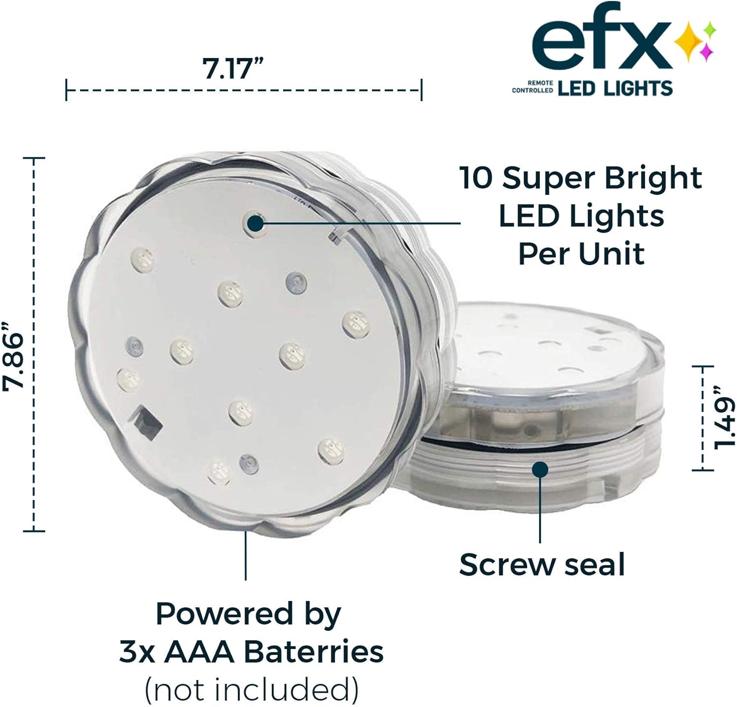- π§ WATERPROOF POOL LED LIGHTS WITH REMOTE - EFX LED outdoor accent lights provide a sense of waterproof led light coziness to your home. Stage an unforgettable light show in your pool with our LED lights. Every pack of submersible LEDβs comes with 1 remote control.
