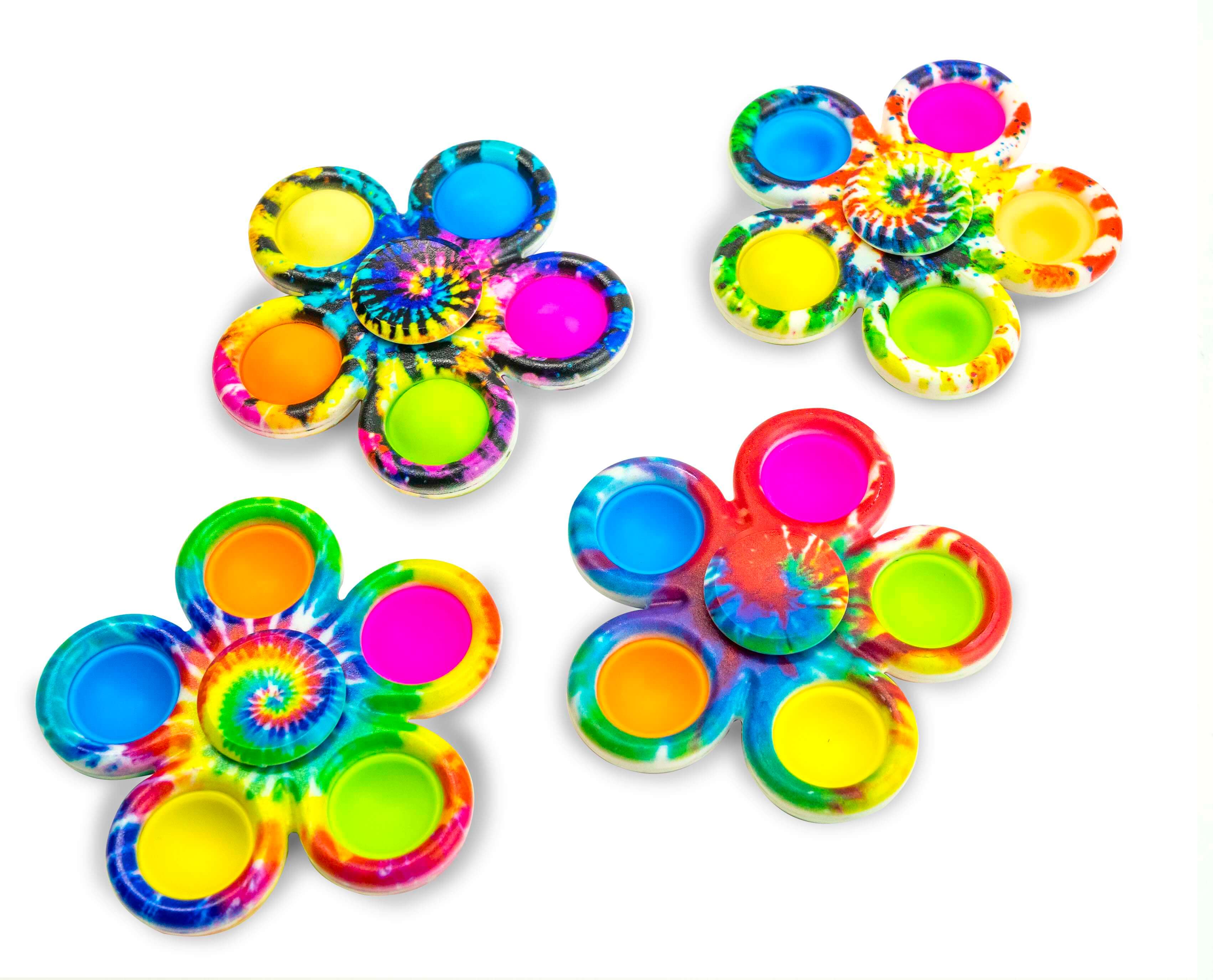 4 Pack Tie-Dye Fidget Spinner Popper Toy