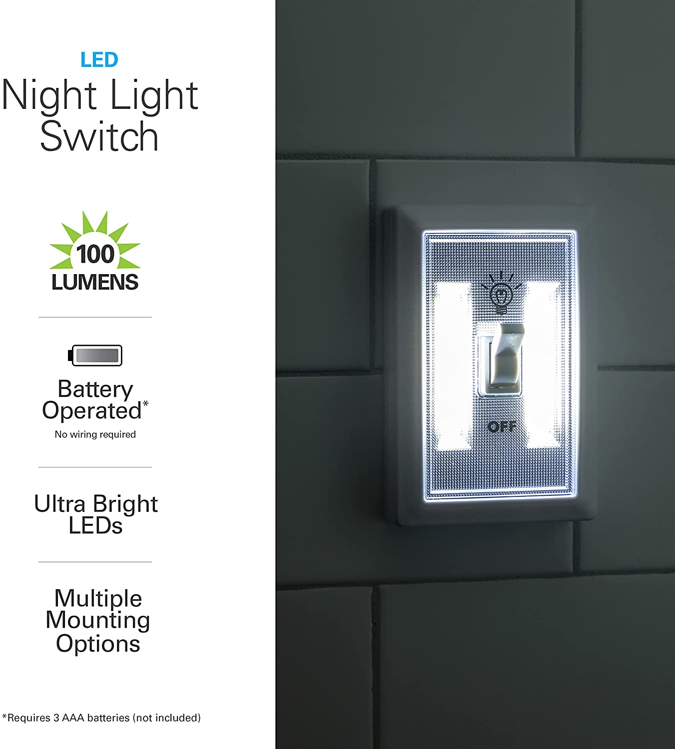 • Battery-Operated LED – This wireless switch requires 3 AAA batteries (not included) and does not require any wiring, making it a convenient wireless wall light or closet light