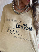 46783 Heather "You're Either Born a Willow or Oak" Distressed High Low Top by A Rare Bird