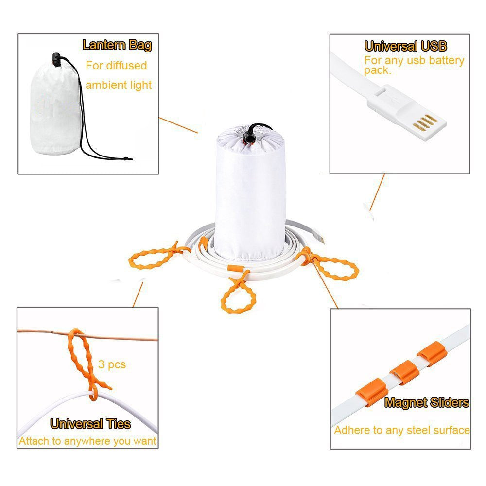 Hang, stick, or transform this LED light rope into a lantern using the provided universal ties, magnets, and pouch