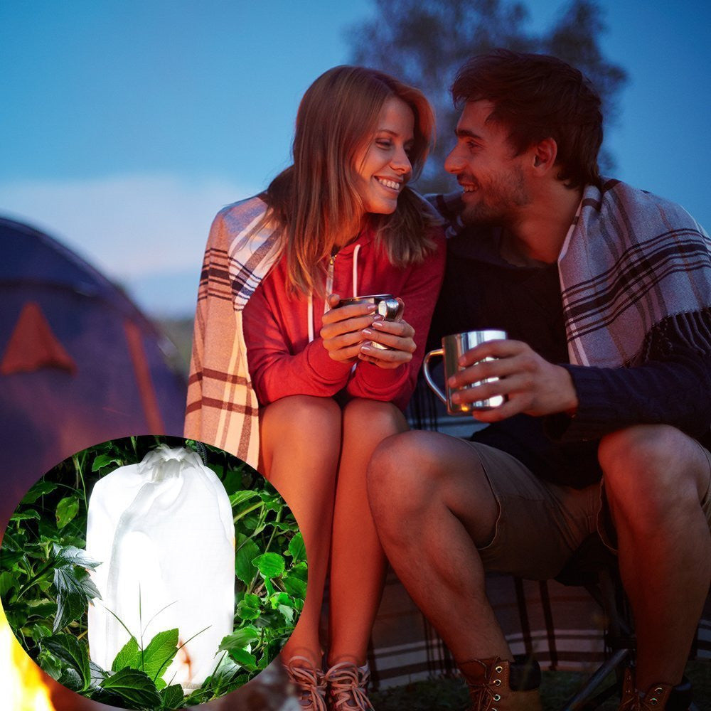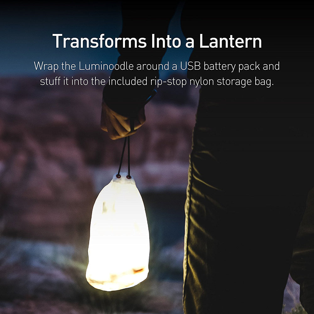 The 5 ft outdoor rope lights come with universal noodle ties, built-in magnets, a utility loop, and a rip-stop bag to double as a lantern WARM COLOR