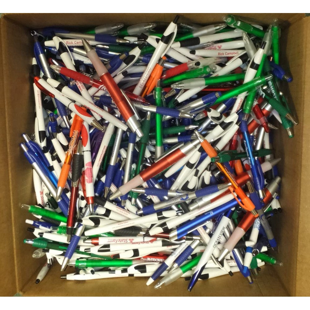 These misprinted quality plastic pens have different company logos imprinted on them. All are first quality retractable misprinted writing pens. Great for restaurant suppliers, office workers, conventions, students, throw-aways for surveys or registering anywhere or anything, or just a good give-away. Styles will vary and many of pens come with a stylus.