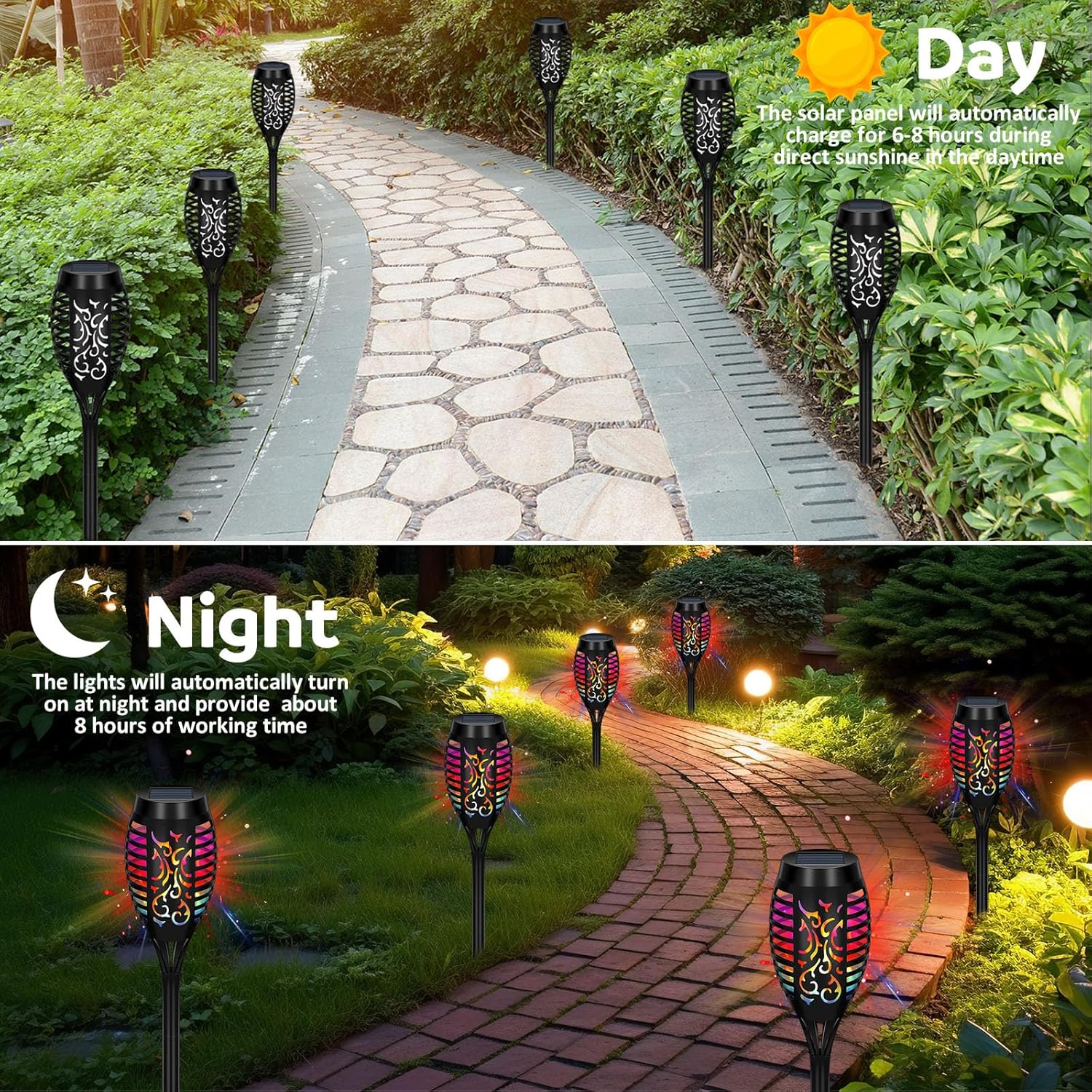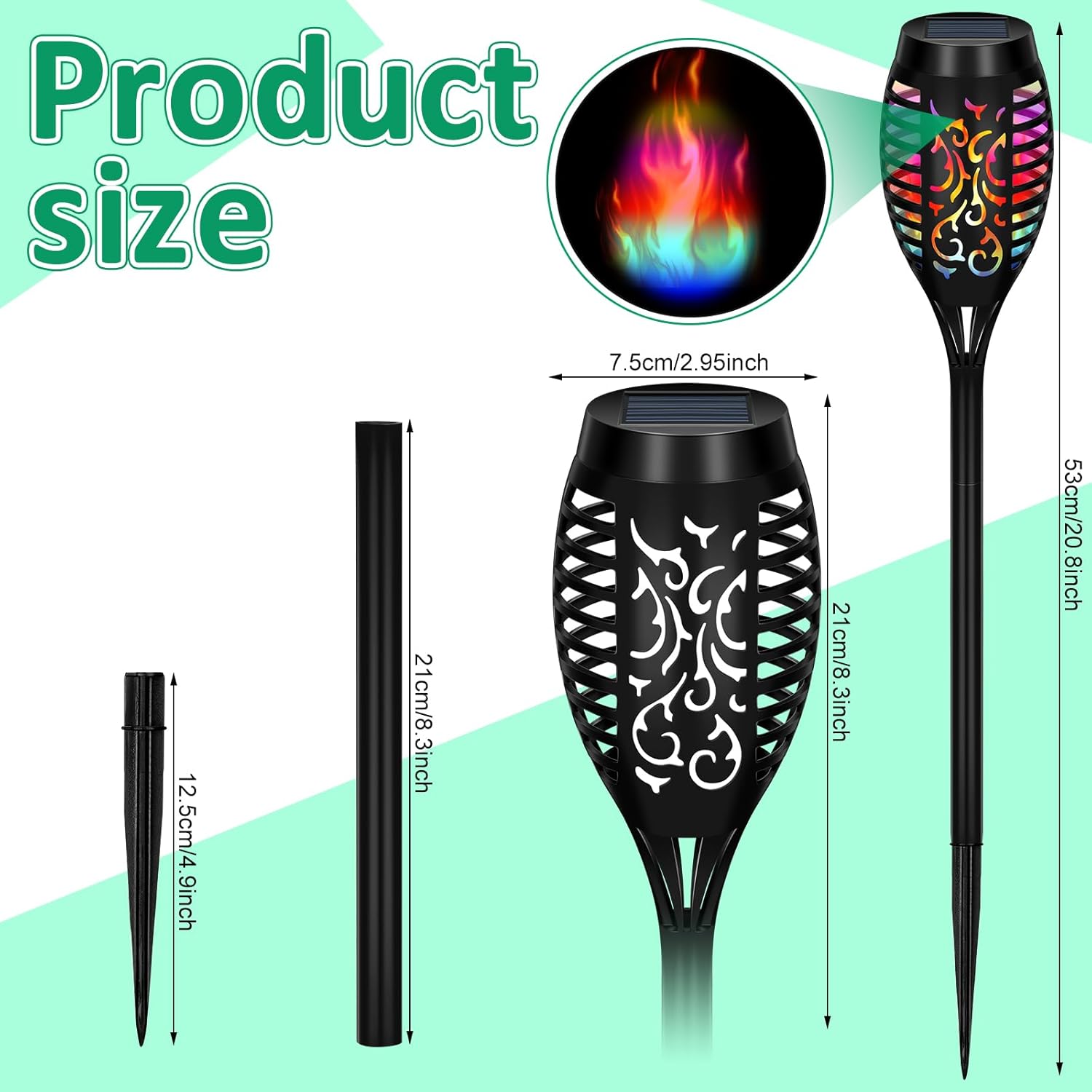 - Suitable for All Outdoor Spaces: whether it's your home's exterior, your garden, yard, driveway, or hiking trail, these solar flickering lights seamlessly blend into all outdoor spaces; Their height of about 20.47 inches makes them ideal for marking trails during nighttime walks or creating an enchanting stimulus around your patio or deck