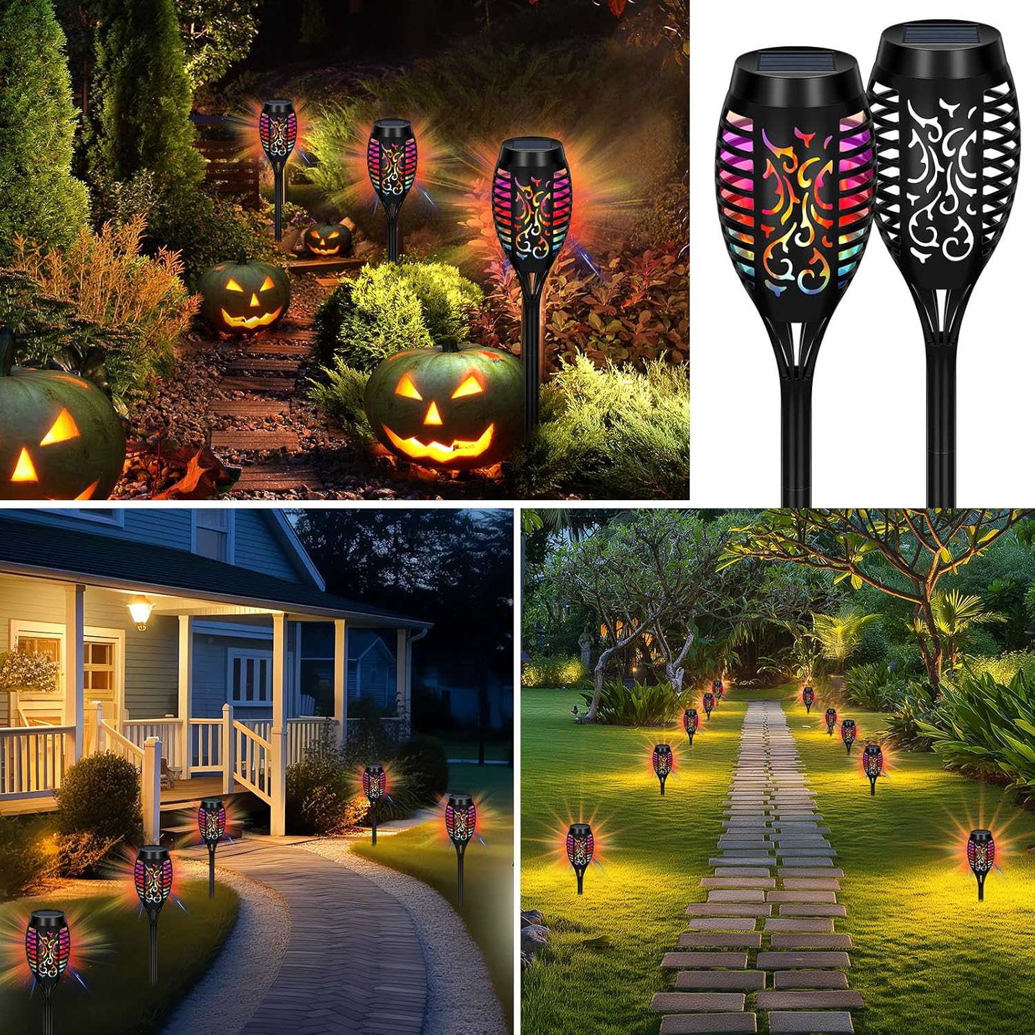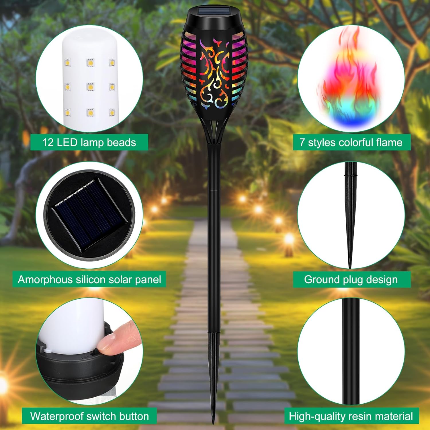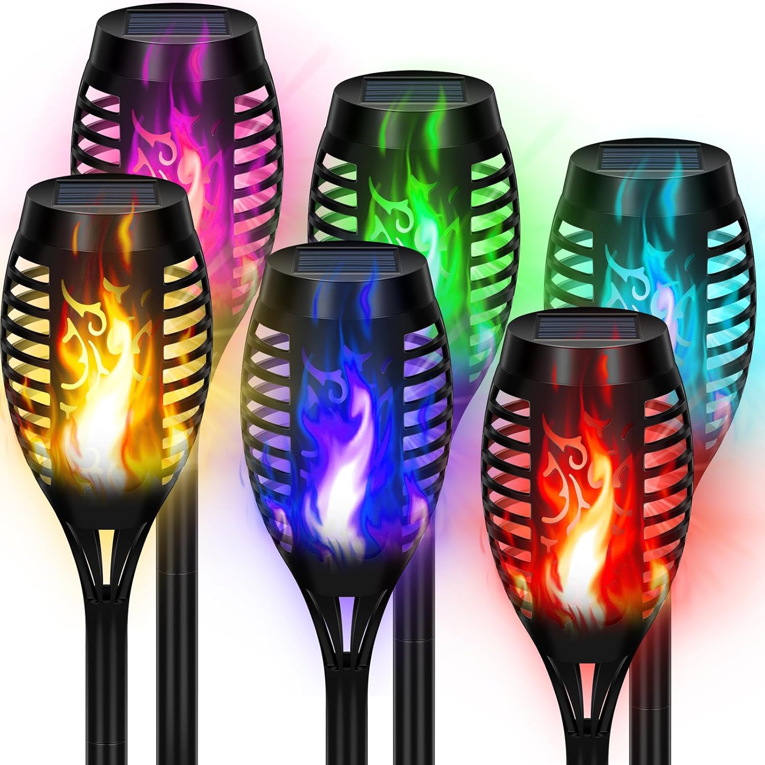- Substantial Pack for Diverse Needs: the package comprises 6 solar torch light with flickering flame, providing ample supply for your outdoor lighting requirements; They are ideal for a wide range of outdoor spaces; Illuminate your garden, yard, driveway, or path, or add a festive touch to your decor by using them as party or festival decorations
