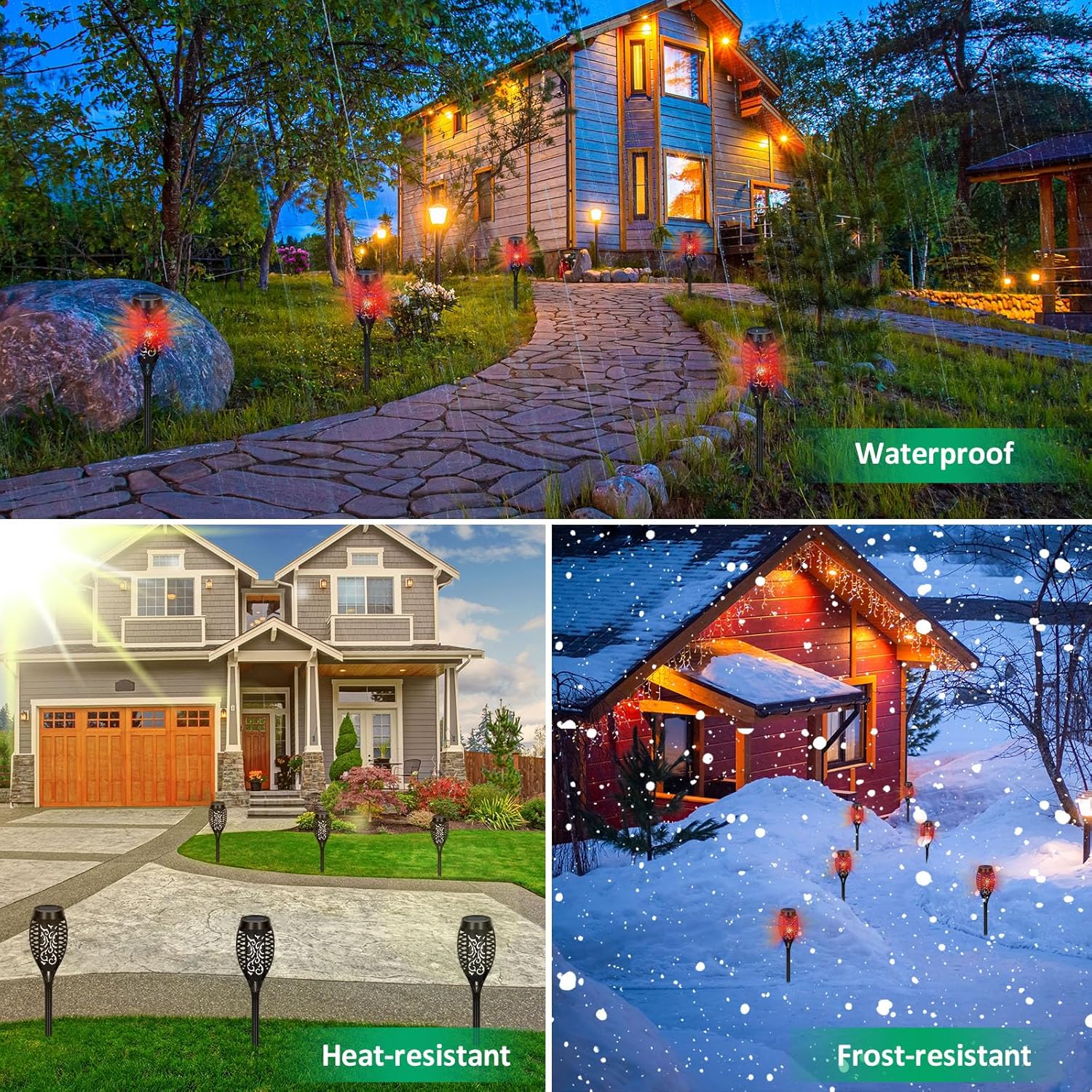 - Weather Resistant and Reliable: crafted from sturdy ABS plastic, these solar flame lights are capable of withstanding all types of weather conditions; Be it rain, snow, wind, or hot weather, these lights continue to perform efficiently, making them a reliable outdoor lighting solution year round
