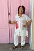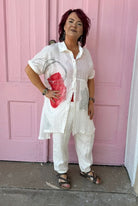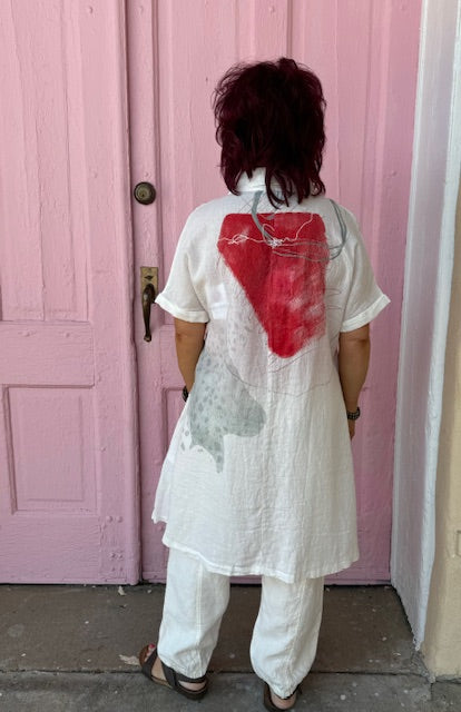 Experience comfort and style with the Celine Linen Button-Down Tunic / Dress by Ever Sassy. Made from breathable linen, this versatile piece features a modern European graphic styling and a button-down design for easy wearing as a tunic, dress, or jacket! Embrace effortless fashion with this must-have piece.