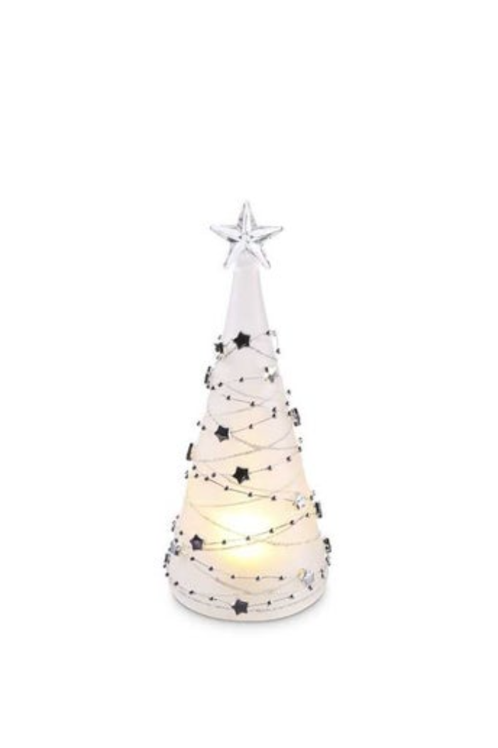 8 Inch Frosted Glass LED Christmas Tree w/Silver Star Garland