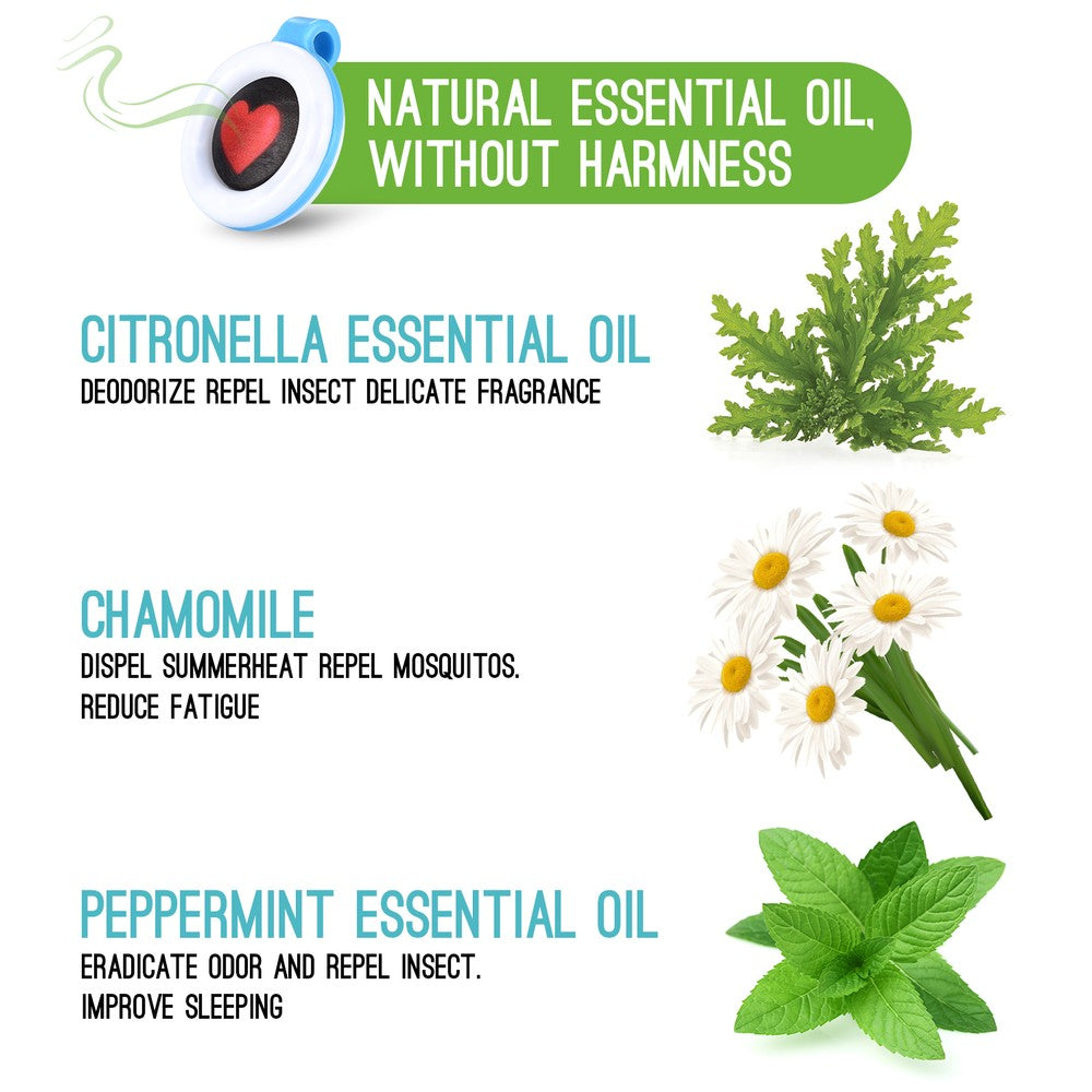 - NATURAL & EFFECTIVE PROTECTION: Made from essential oils of chamomile, citronella and peppermint, our repellent clip ons smell great and they can be used by pregnant women and babies without any fear of side effects.