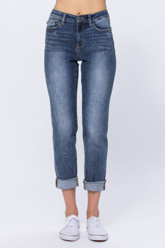 These boyfriend jeans got a fun upgrade with a subtle beach splash detail! Wear them cuffed or uncuffed, dressed up or dressed down.