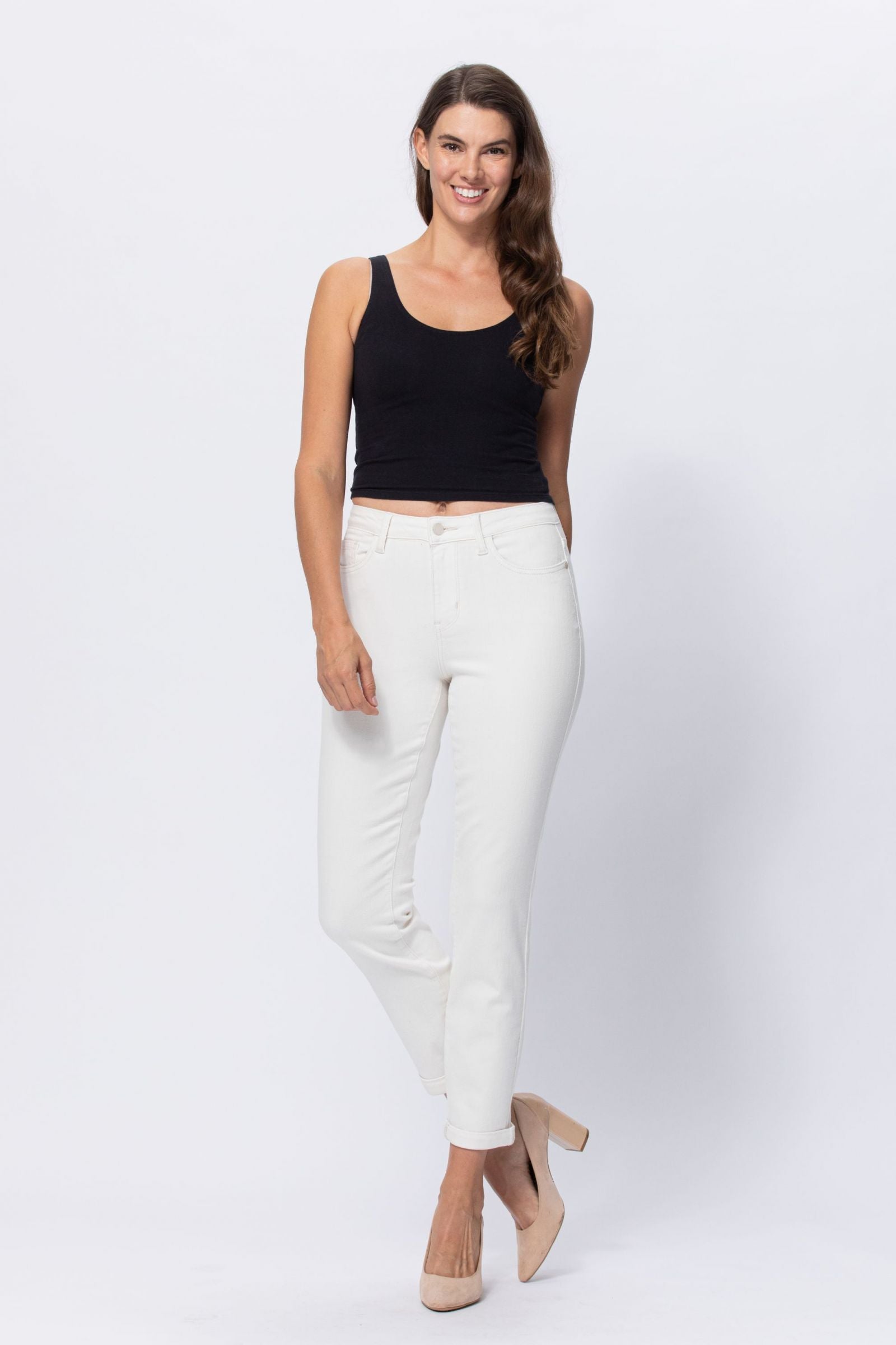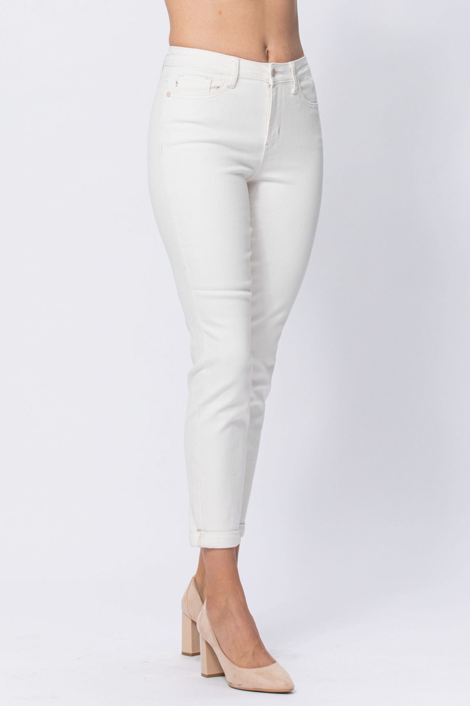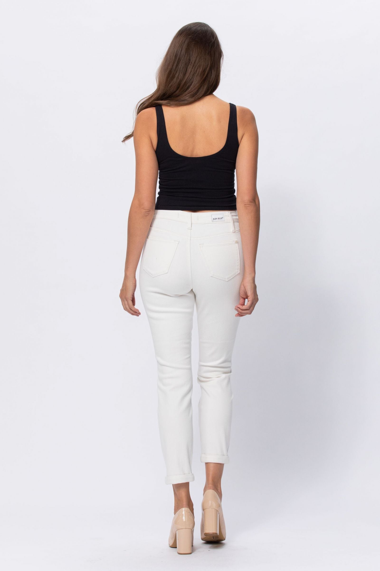 88452 Kathleen Hi-Rise Ecru Cuffed Boyfriend Judy Blue Jeans