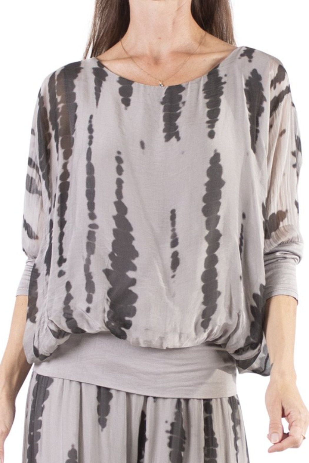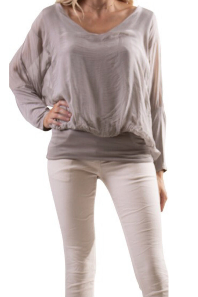 8975 Silk top with banded bottom