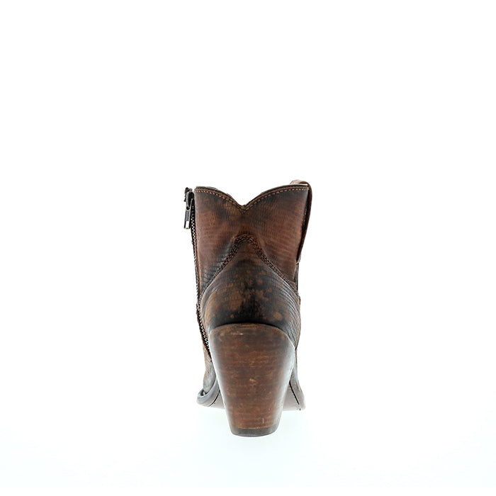 IMPORTANT: this bootie has finishes that make it look used. We did special treatments to the skins in order to achieve this look. Premium quality leather free of lead and other heavy metals leather lining 100% leather sole and heel Welt construction (sole sewn to the boot) Tube height approx 15cm Heel height approx 9cm narrow round tip Inner Side Closure Comfort Cushioned Insole