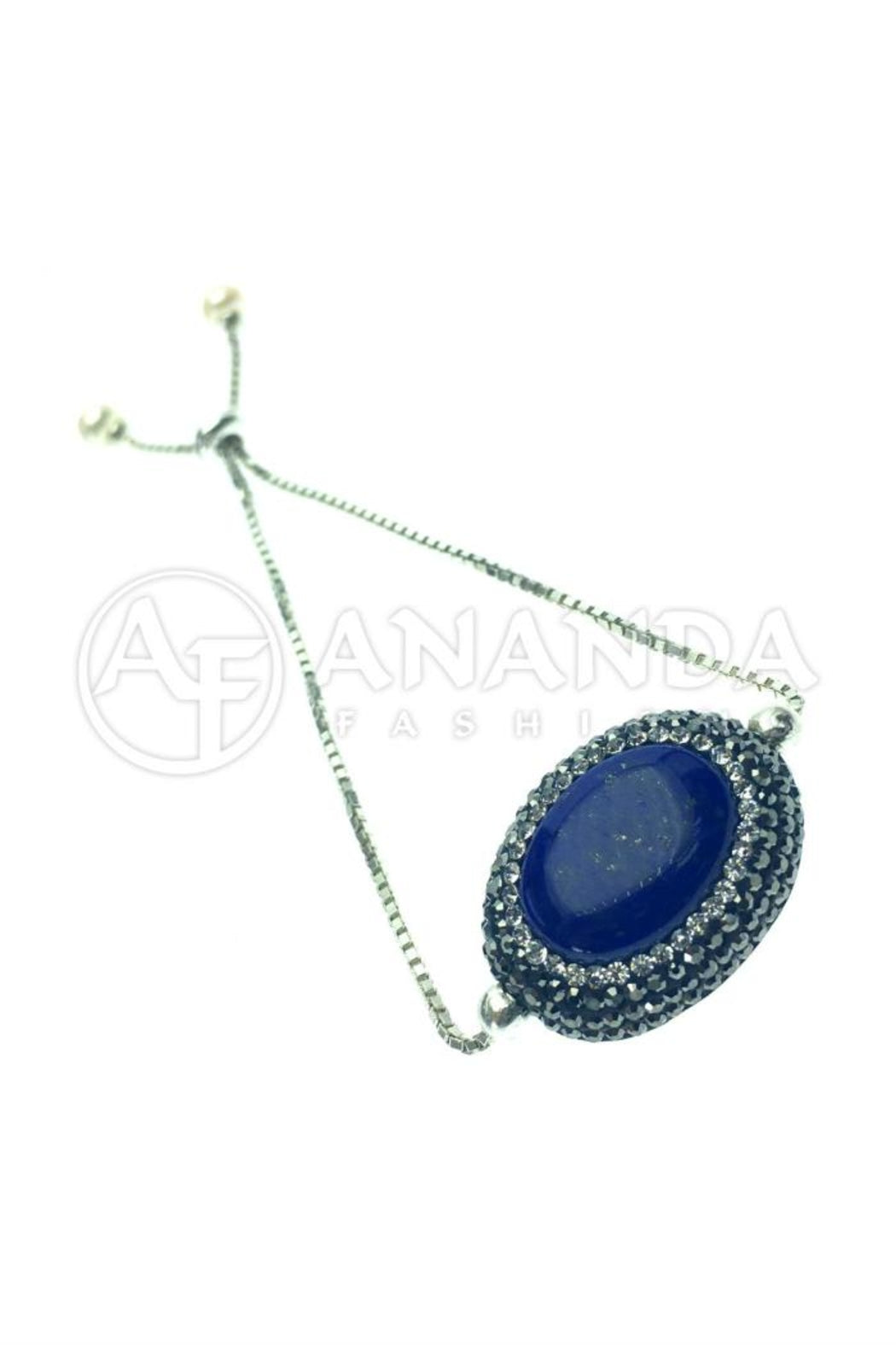 Handcrafted 925 Silver Adjustable Bracelet with Lapis Lazuli, Swarovski Crystals and a Rhodium Overlay.