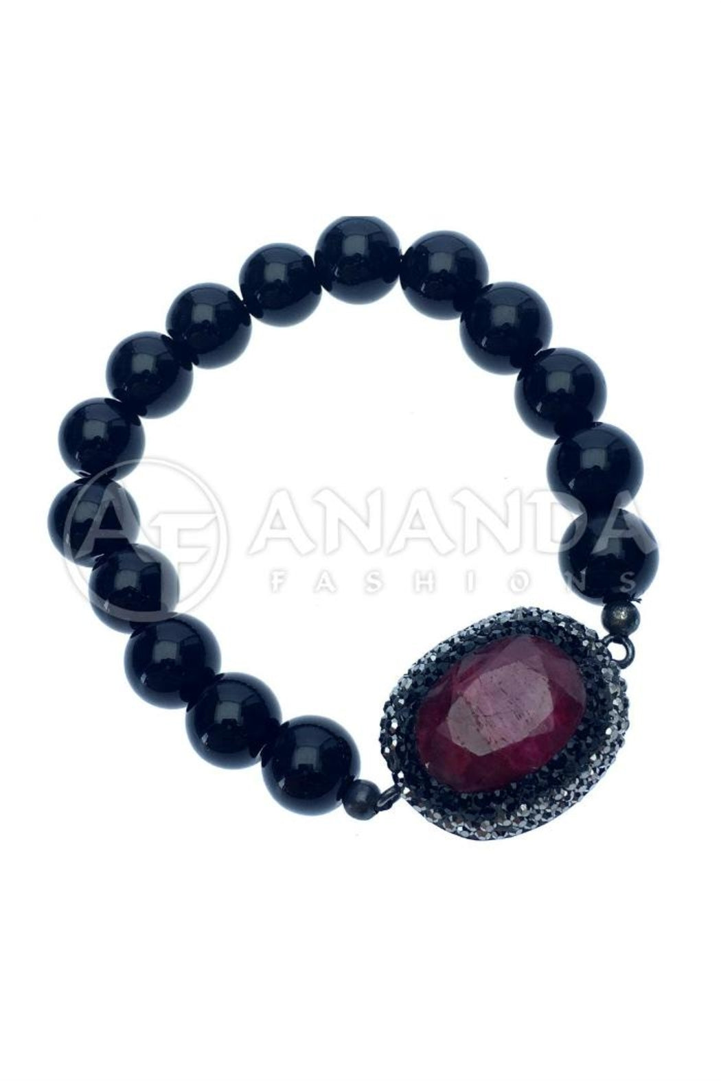 Handcrafted 925 Silver Bracelet with Ruby, Swarovski Crystals and a Black Rhodium Overlay. NOTE:This item is handcrafted and made to order and ships within 3 to 4 weeks. Not available for immediate delivery.