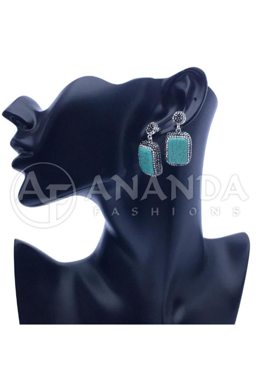 Handcrafted 925 Silver Single Drop Earrings with Turquoise, Swarovski Crystals and a Rhodium Overlay.