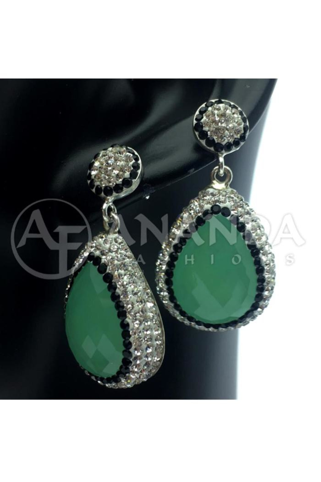 Handcrafted 925 Silver Single Drop Earrings with Cats Eye, Swarovski Crystals and a Rhodium Overlay.