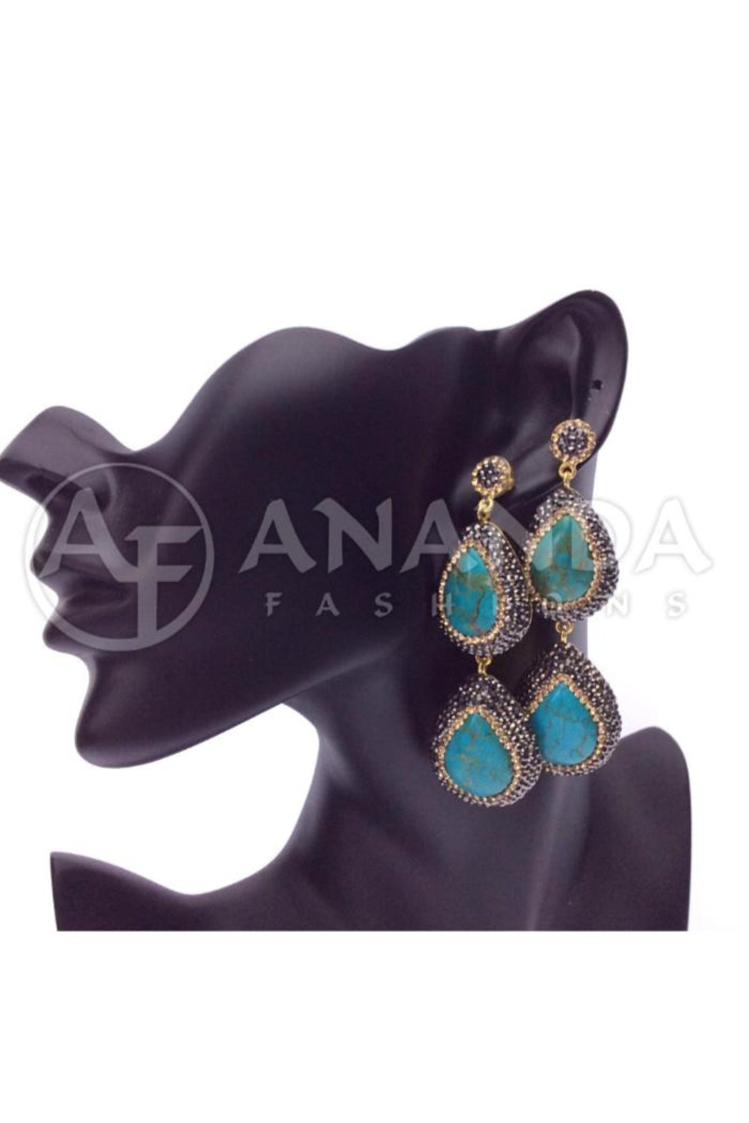 Handcrafted 925 Silver Double Drop Earrings with Turquoise, Swarovski Crystals and a Gold Overlay.
