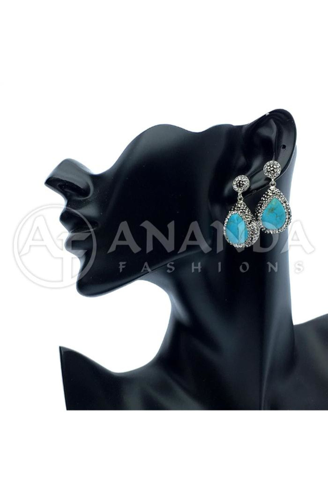 Handcrafted 925 Silver Single Drop Earrings with Turquoise, Swarovski Crystals and a Rhodium Overlay.