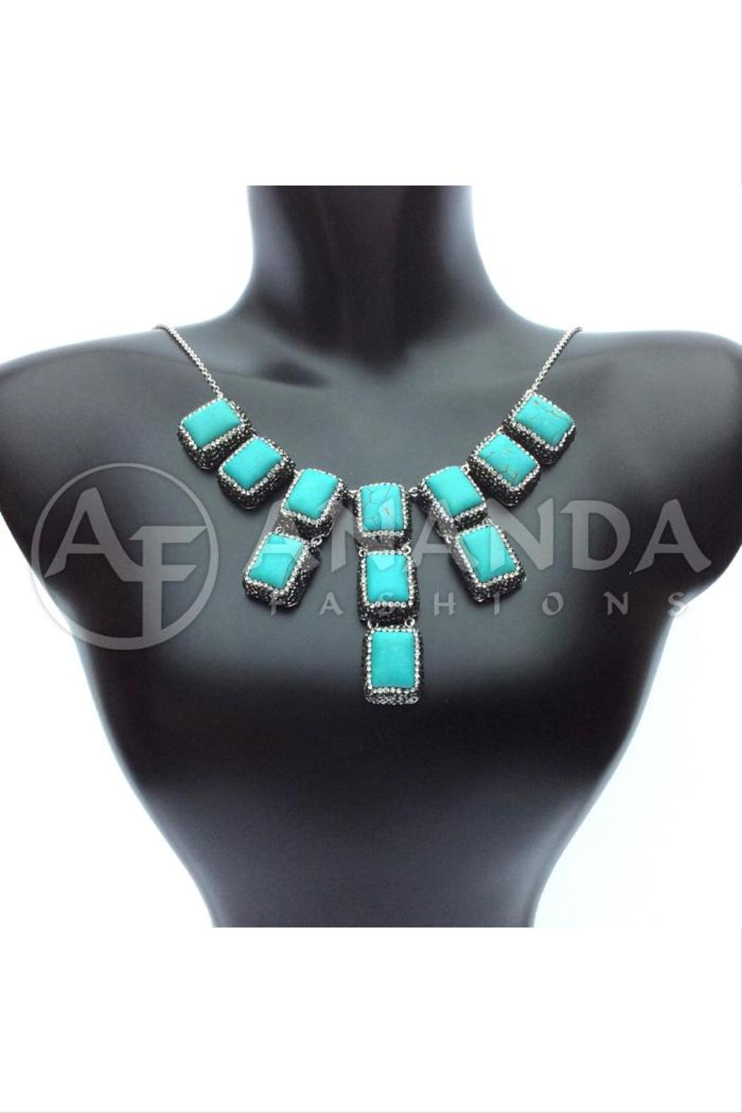 Handcrafted 925 Silver Necklace with Turquoise, Swarovski Crystals and a Rhodium Overlay.