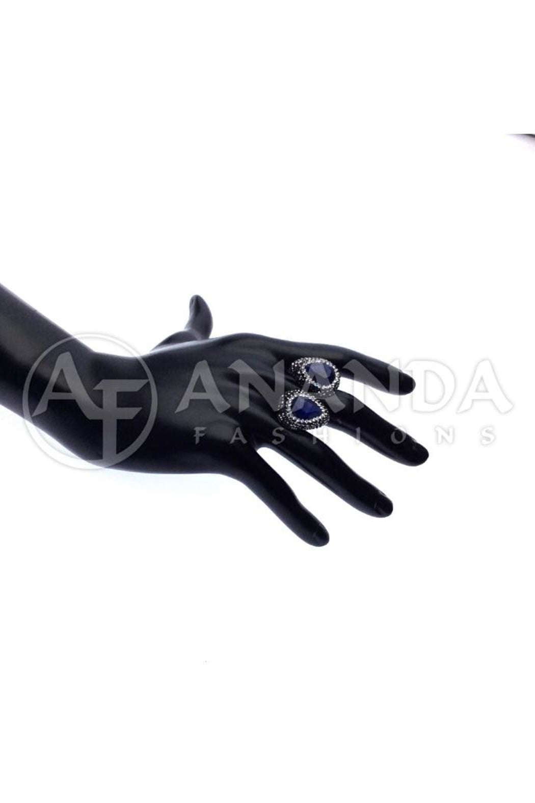 Handcrafted 925 Silver Ring with Sapphire, Hematite and Swarovski Crystals. Size adjustable. Rhodium overlay.