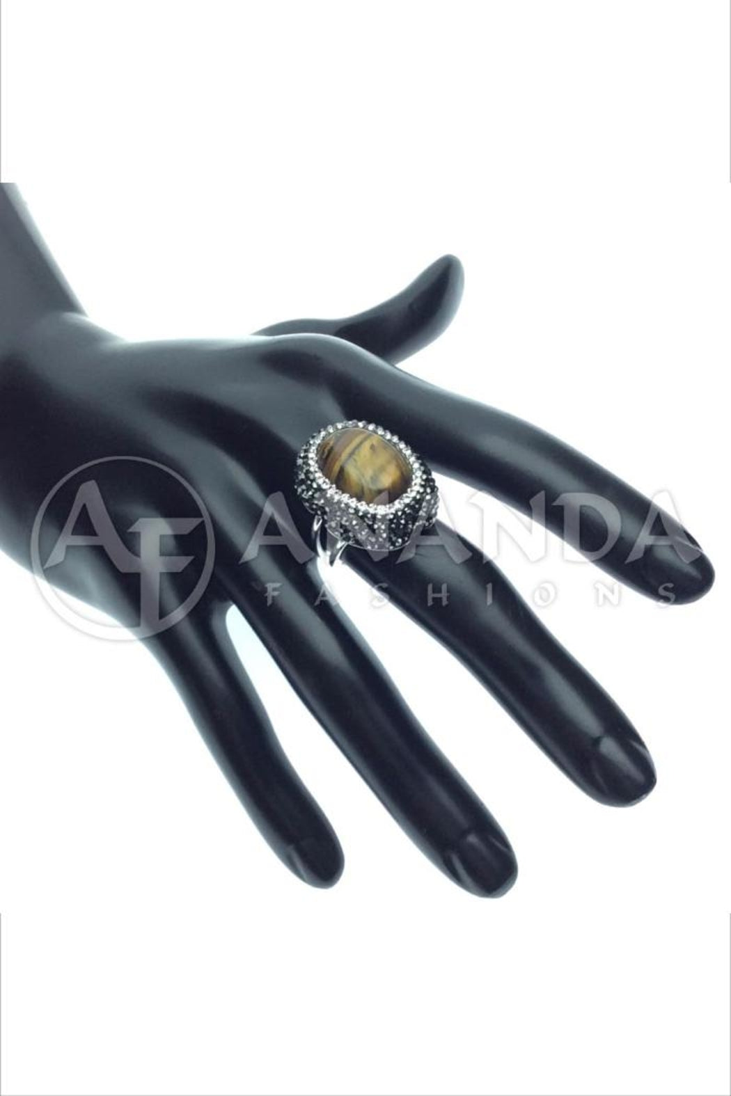Handcrafted 925 Silver Ring with Tigers Eye, Hematite and Swarovski Crystals. Size adjustable. Rhodium overlay.