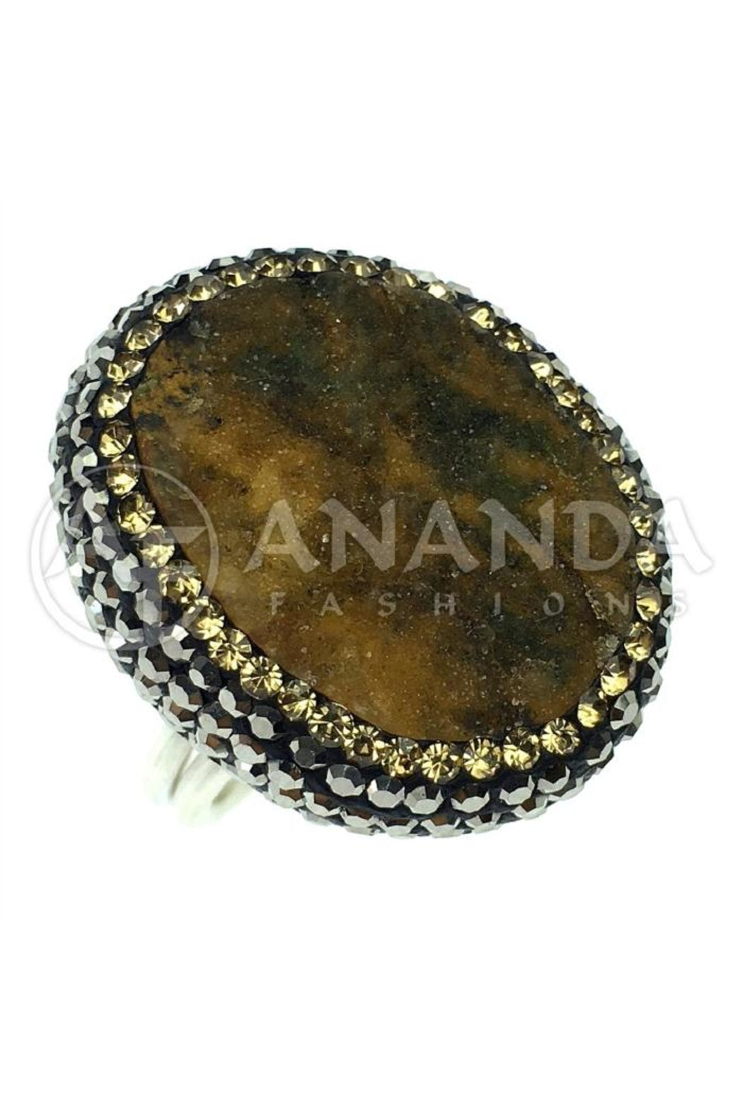 Handcrafted 925 Silver Ring with Chalcedony, Hematite and Swarovski Crystals. Size adjustable. Rhodium overlay.